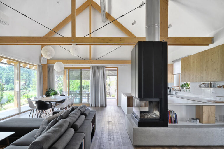 V Vojniku je zrasla prijetna enodružinska hiša, ki z dolgo linijo sledi terenu lokacije in vanj ne posega, temveč ga s svojo prisotnostjo dopolnjuje in