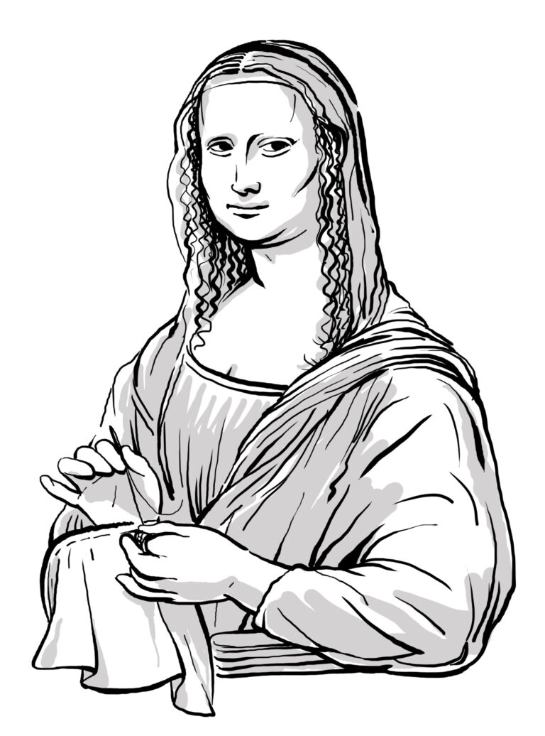 S stene se smehlja Mona Liza. Ne kakršnakoli, temveč izvezena iz pisanih niti – gobelin. V nasprotju z razvpitejšo sestro iz Louvra se te lahko