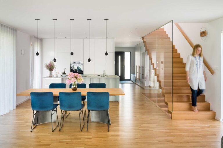 Interier novozgrajene enodružinske hiše na Primorskem je delo Studia Tina Rugelj. Načrtovanje notranje opreme je potekalo že vzporedno s pripravo idejnega projekta za hišo, kar