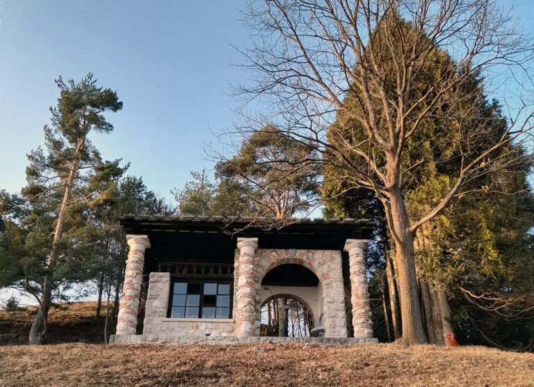 Na koncu kostanjevega drevoreda v vrtu gradu Kazenstein v Begunjah na Gorenjskem že od poznih tridesetih let prejšnjega stoletja stojita paviljon in čajnica redovnic sester