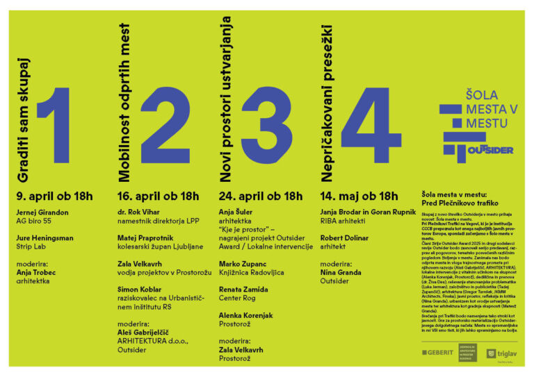 Revija Outsider je prejela Plečnikovo medaljo za prispevek k bogatitvi arhitekturne kulture. Kot piše v utemeljitvi, sta revija in spletni portal Outsider nov slovenski medij o kulturi in družbi, ki si prizadeva za poznavalski in hkrati distanciran pogled na prostor. Ekipa arhitektov, ki skrbi za njen obstoj, je nagrajena za inovativnost pri širjenju zavedanja o arhitekturi in prostoru v kontekstu širše kulture in širše javnosti ter za vztrajnost na vsebinski in finančni neodvisnosti.