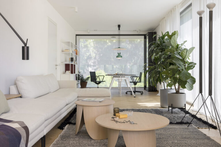 Studio Mehanizem je dopolnil svetle prostore nove stanovanjske stavbe z zasnovo subtilno eklektičnega interiera, pri čemer ohranja odprto zasnovo s premišljenimi pogledi, hkrati pa jim