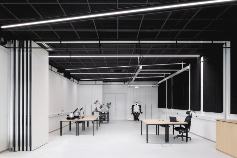 Na inštitutu Jožef Stefan, na Odseku za avtomatiko, biokibernetiko in robotiko, so arhitektki Vivijani Zorman ter arhitektu Juretu Vaniču zaupali celostno prenovo Laboratorija za robotiko