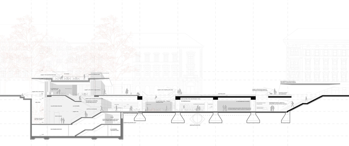 ES: Zanimiv je primer natečaja za novi Minipleks. Ko smo se pripravljali za natečaj, smo se veliko ukvarjali z raziskavo tega predela mesta. Na koncu smo se odločili za enostavno rešitev s tremi preboji – atriji, ki bi delovanje tega nedostopnega predela tako predrugačili, da nam je komisija očitala, da smo bili preveč radikalni. Poseg sploh ni bil velik, a je pomembno spremenil izkušnjo tega prostora.