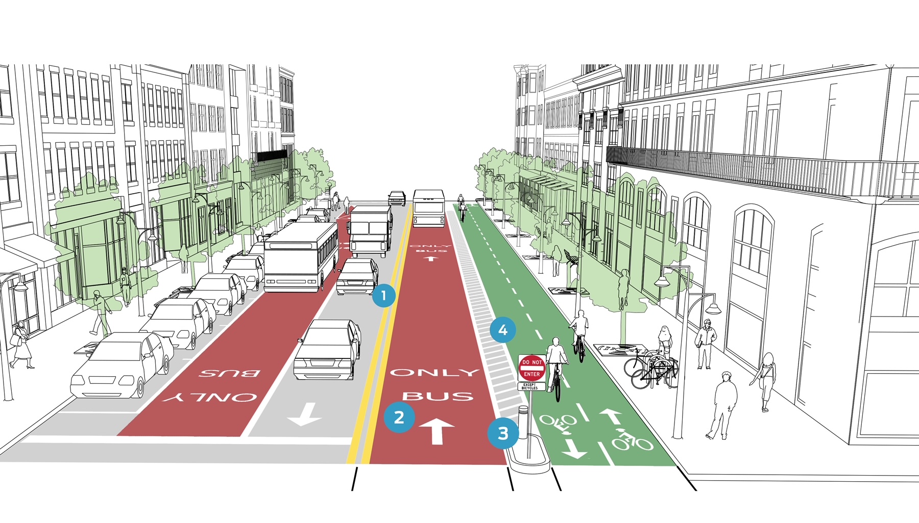 Preureditev mestne vpadnice po načelih prednostnih cest za javni prevoz ter zagotavljnja širokih voznih poti kolesarjem.
