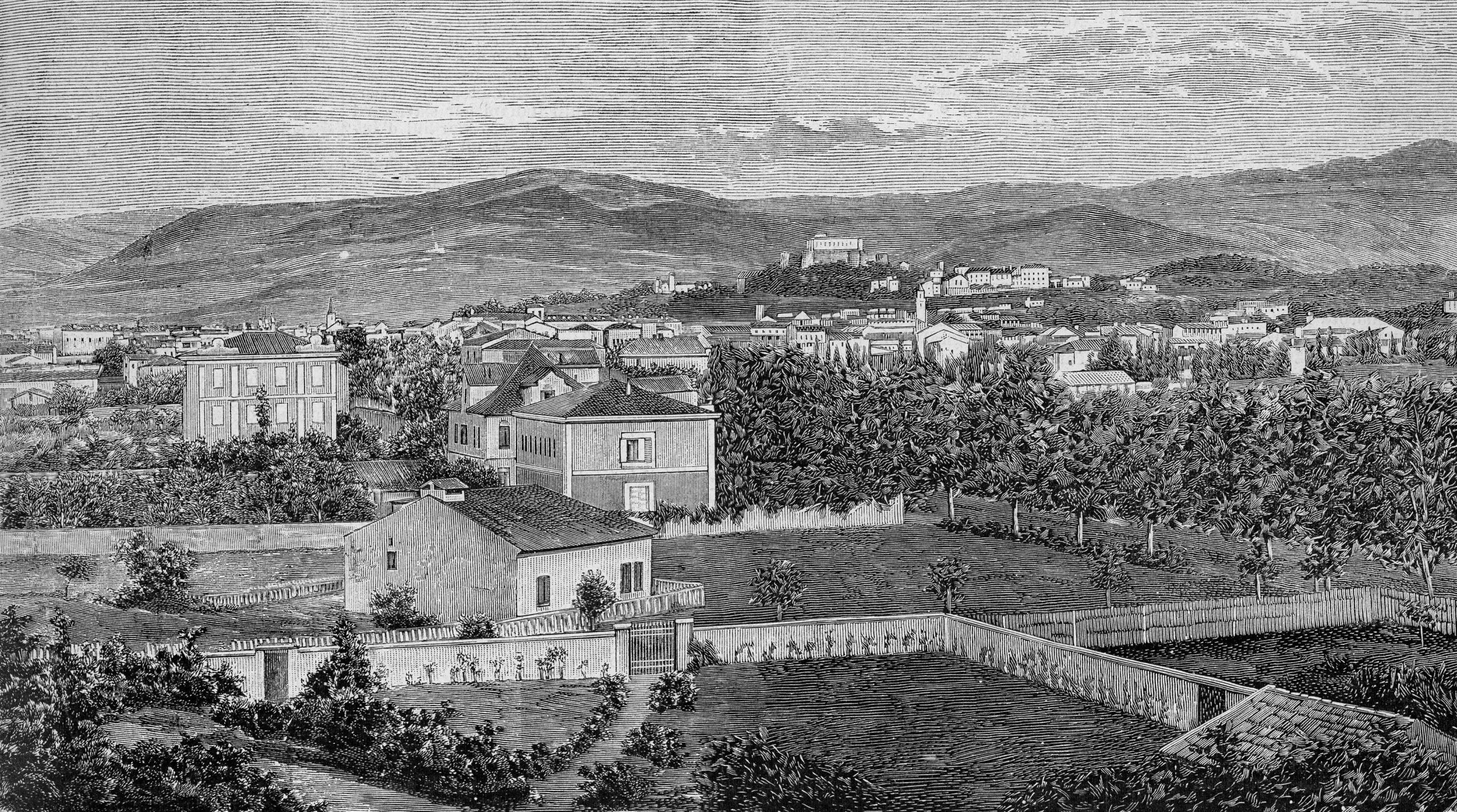 Avstrijska Nica: Veduta iz 19. stoletja prikazuje Gorico, obdano s čudovitimi plemiškimi vilami.