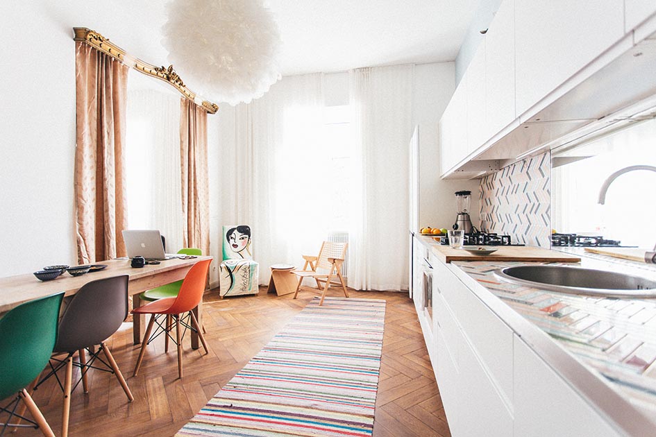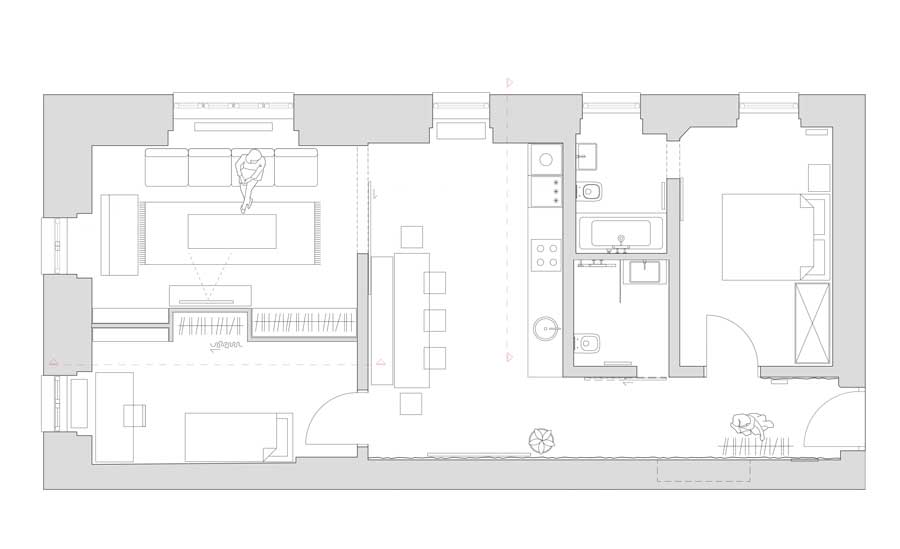 Že pred stoletjem in pol so zaskrbljeni meščanski kritiki po Evropi in tudi pri nas opozarjali na nezdrav življenjski slog prebivalcev urbanih središč. V povprečnem meščanskem stanovanju se je kljub novim navadam in standardom na pomanjšan in karikiran način pogosto le oponašalo stari aristokratski slog bivanja z reprezentančnimi paradnimi sobami, ki se jih je navadno uporabljalo samo ob boljših obiskih. Majhne dvoriščne kamrice, v katerih so bile kuhinja, shramba in kakšen kabinet za otroke, pa so bili kljub dejstvu, da se je v njih odvijala večina družinske dnevne rutine, zapostavljene, slabo prezračene in nasploh nezadostne. Kuhinja seveda danes ni pomožni, daleč od oči obiskov umaknjen prostor, ampak se je prerodila v simbolno in dejansko središče doma. To velja tudi za predelavo starega meščanskega stanovanja na Levstikovi v Ljubljani, ki je doživelo temeljito programsko prevetritev. Umestitev prostorov, kjer se srečujejo skupni interesi prebivalcev stanovanja: kuhinje in kopalnice, bi se zdela obiskovalcu iz 19. stoletja nadvse nespodobna – dejstvo ki kaže tako na hitro se spreminjajoče predstave o domu, obenem pa tudi na neizmerno fleksibilnost starih meščanskih hiš, za katere se zdi, da lahko enako uspešno preživijo v kateremkoli času. Čeprav je tu vse sodobno, ob sprehodu po sobah srečujemo tudi bežne reminiscence minulih časov: ribjo kost po tleh, opečnate oboke nad sabo, zavese med kuhinjo in dnevno sobo. Interjer je nov, ne pa tudi očiščen; je sodoben, obenem pa ne minimalističen. Je reinterpretacija in ne izjava.