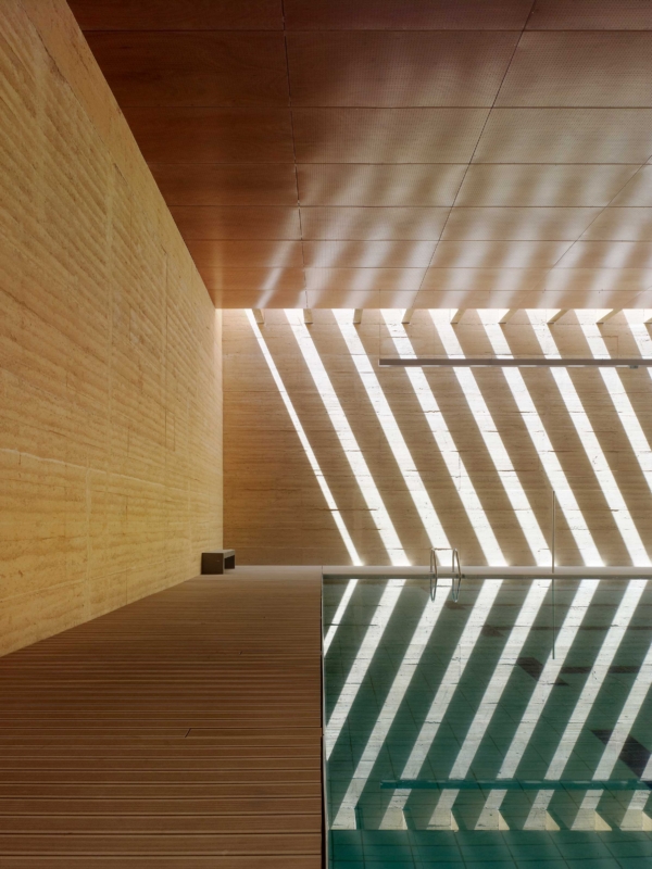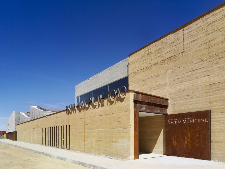 Javni pokriti bazen v španskem mestu Toro je zgrajen iz zbite zemlje. Zasnovali so ga v arhitekturni pisarni Vier Arquitectos.