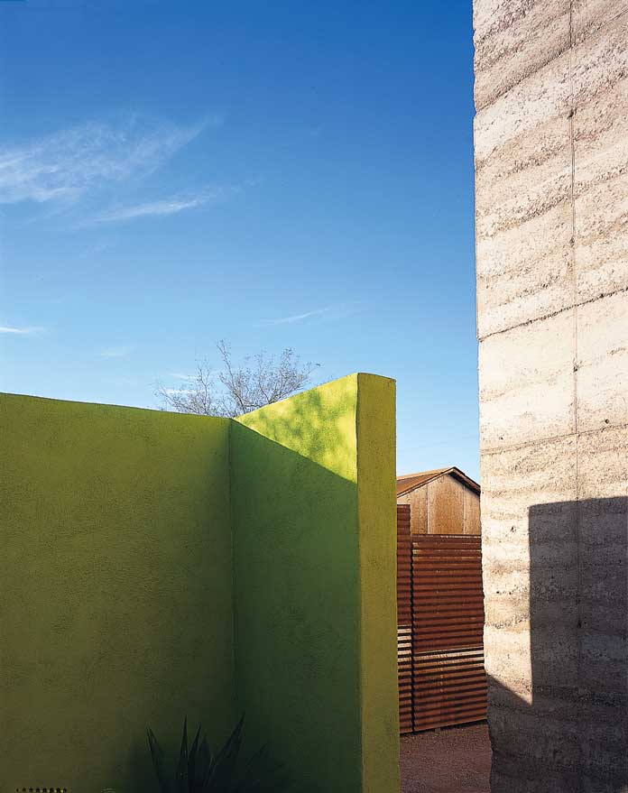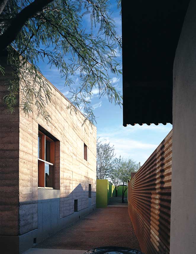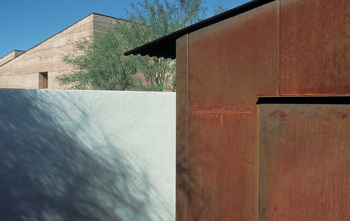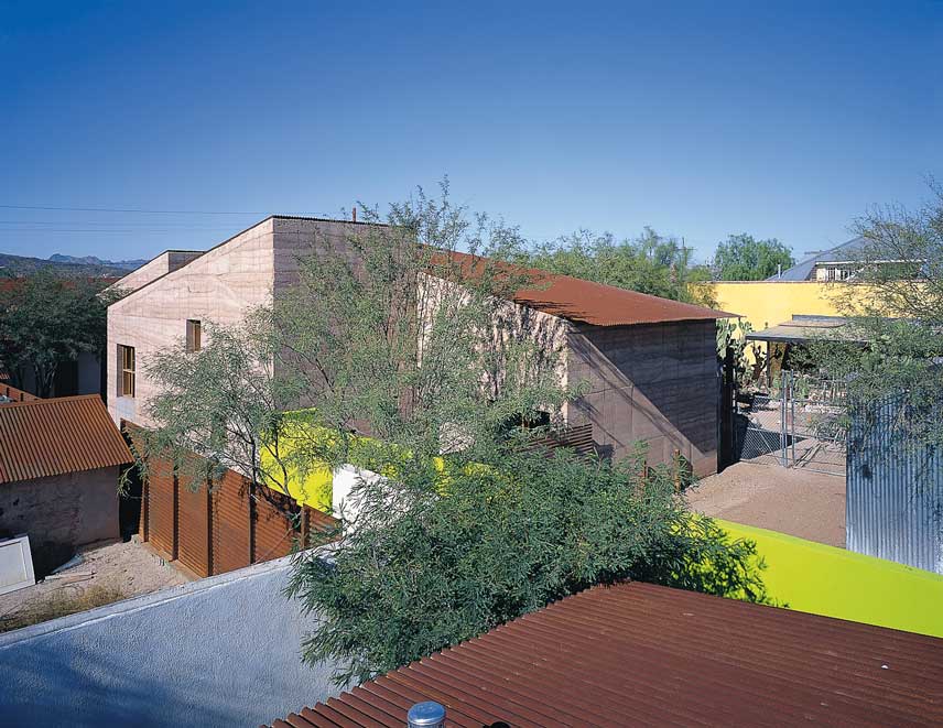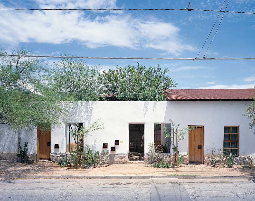 V četrti Barrio Historico v arizonskem Tusconu je stala hiša iz zemlje (adobe) v zelo slabem stanju. “Ko sem prvič prišel na lokacijo, je bila hiša pravzaprav ruševina,” piše arhitekt Rick Joy v svoji knjigi Desert Works (Puščavska dela). Od nekdanje stavbe je ostal le še zid, ki je ozemlje hiše ločeval od ulice, in nekaj sten. Prvi del projekta je zajemal natančno obnovo obstoječih elementov, pri čemer je bil arhitekt previden, da ne bi potvarjal zgodovinskega stanja. V drugi fazi projekta pa so na dvorišču za zidom zrasle tri manjše stavbe iz zbite zemlje, kjer je danes umetniški atelje in rezidenca. “Projekt je potegnil jasno laočnico med starim in novim,” pojasnjuje Rick Joy.