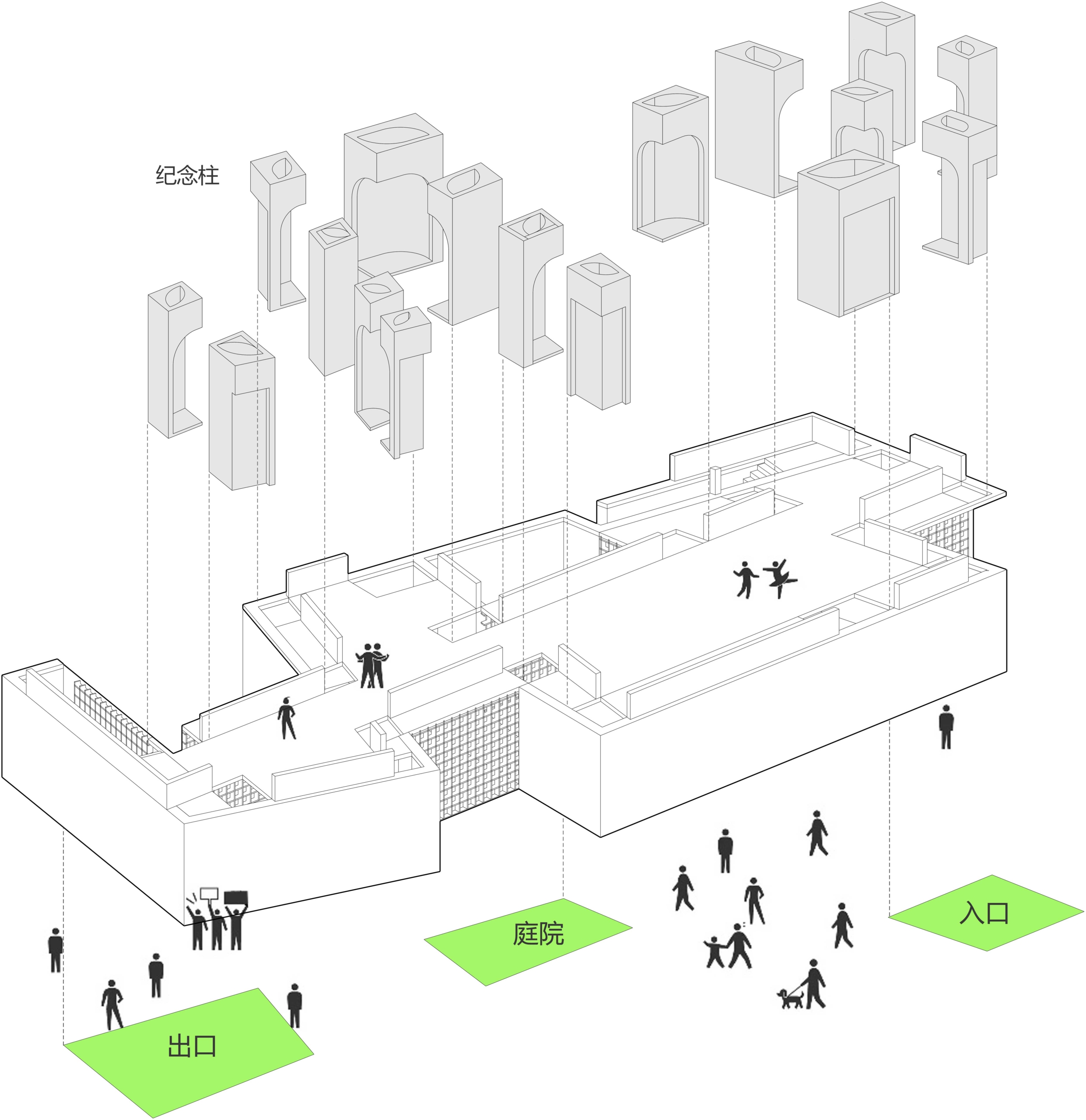 Spominska stavba si za izhodišče jemlje sedemnajst pomembnih točk v Wangjingovem življenju. Ti prelomni dogodki so v stavbi obeleženi na vogalih in stičiščih, ki so izvedeni kot betonska jedra med stenami iz zbite zemlje. S tem so arhitekti izvedli tudi spretno potezo: stavbo, ki bi bila sicer megalomanska in bližje industrijskim halam kot drobnemu tkivu vasi, so razdrobili na več manjših volumnov. Zunanjost stavbe je videti skromna; notranjost pa ponuja dramatično izkušnjo interierja. Spominska dvorana je zasnovana kot oder, na katerem lahko v sedemnajstih stopnjah vsak vaščan podoživi Wangjingovo življenje.