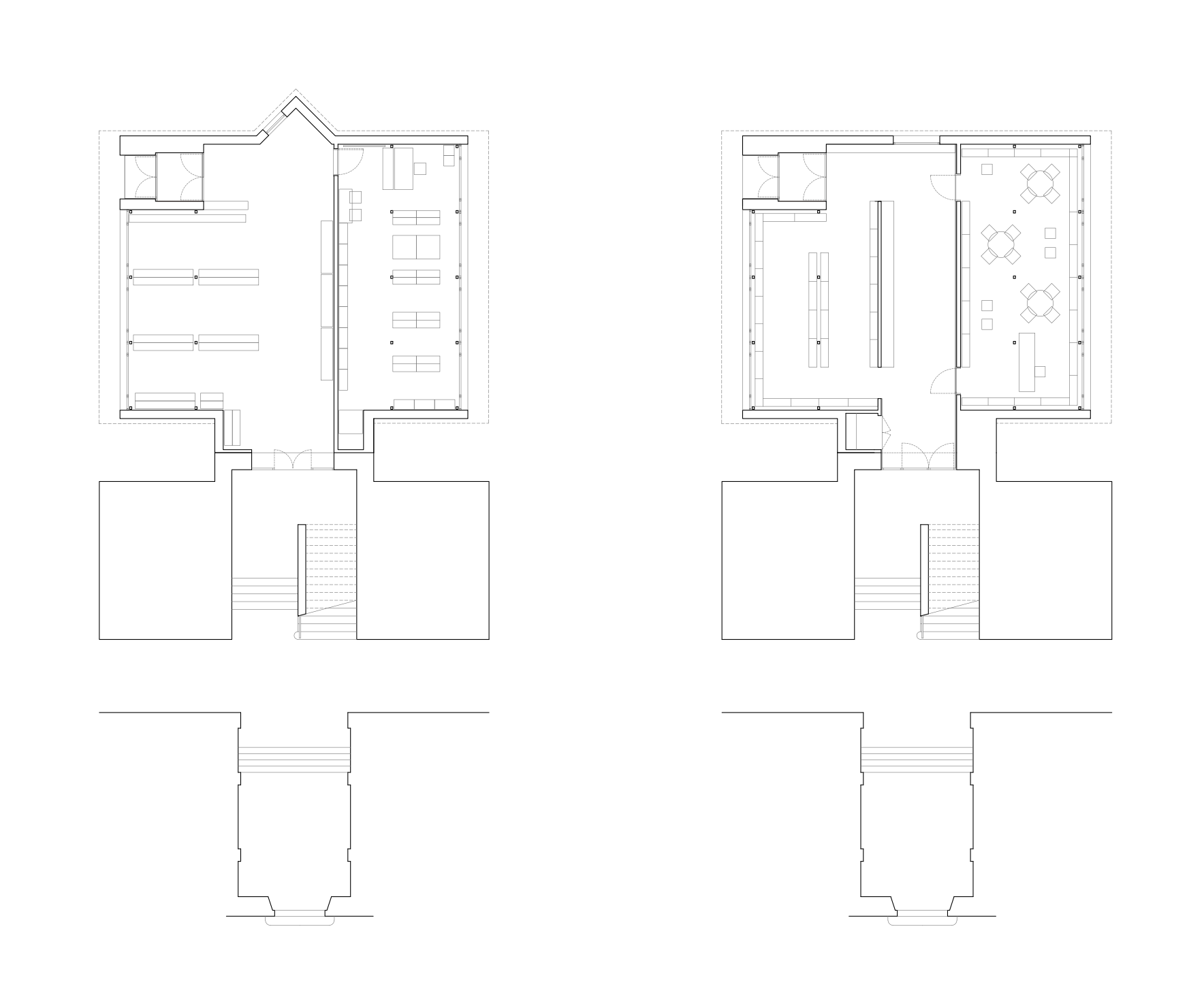 S celotno prostorsko reorganizacijo so bile zasnovane nove garderobe in majhna vhodna avla. Posegi so bili minimalni – prostostoječi zid, ki razmeji odprte garderobne omare in vzpostavi avlo ter preoblikovanje trikotnega fasadnega zaključka v večje okno. S slednjim posegom je bila poudarjena centralna os stavbe, ki se nadaljuje v historični del šole. Poleg tega okno omogoča vstop naravne svetlobe v notranjost prostora in ga vizualno poveže z zunanjostjo – pogled na šolsko igrišče. Knjižnica je bila v večini ohranjena; premaknjen je bil njen vhod za boljšo vzpostavitev avle, dodan pa je bil še en vhod. Njena notranja zasnova je bila zgolj optimalno preoblikovana – knjižne police po obodu in prilagodljiv prostor za delo na sredini.