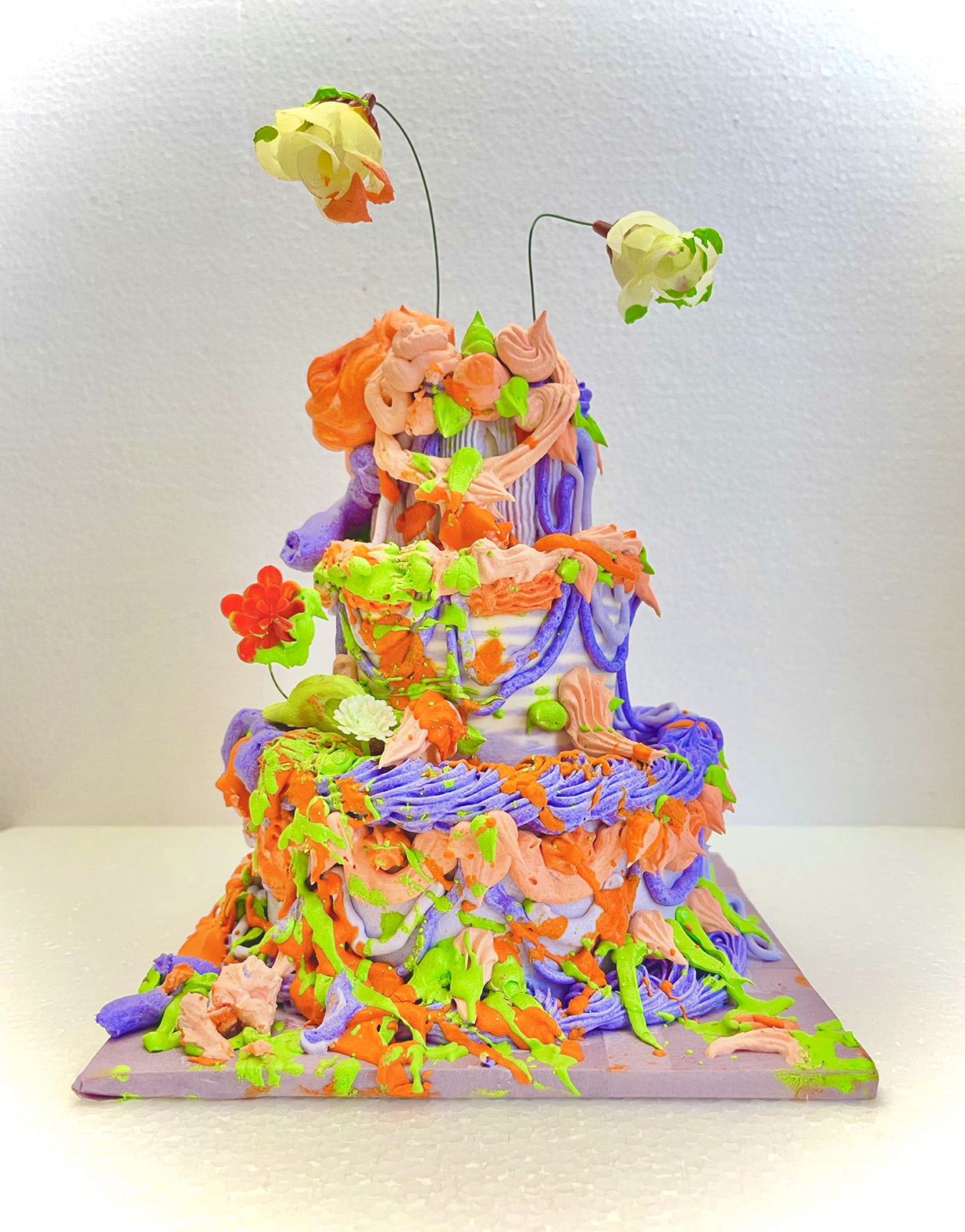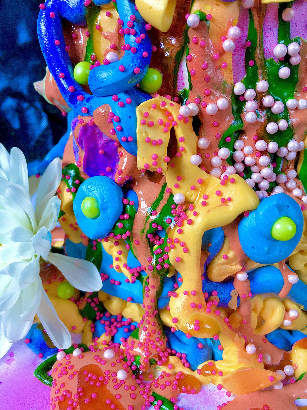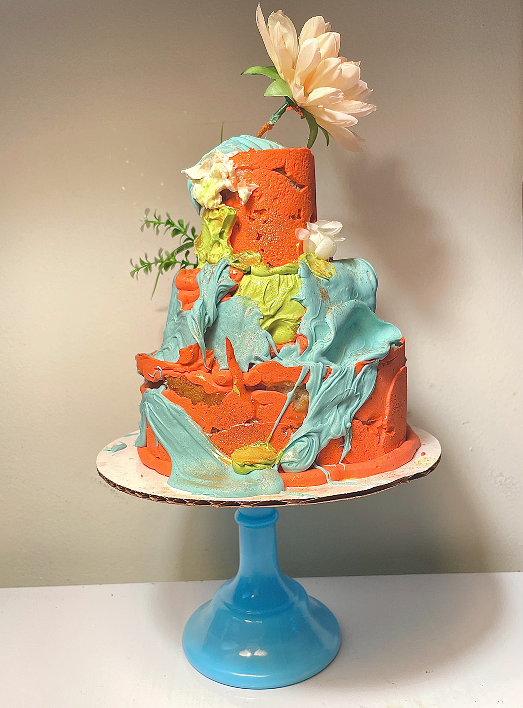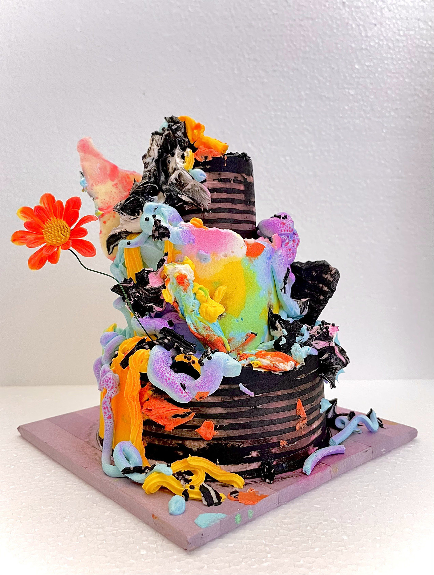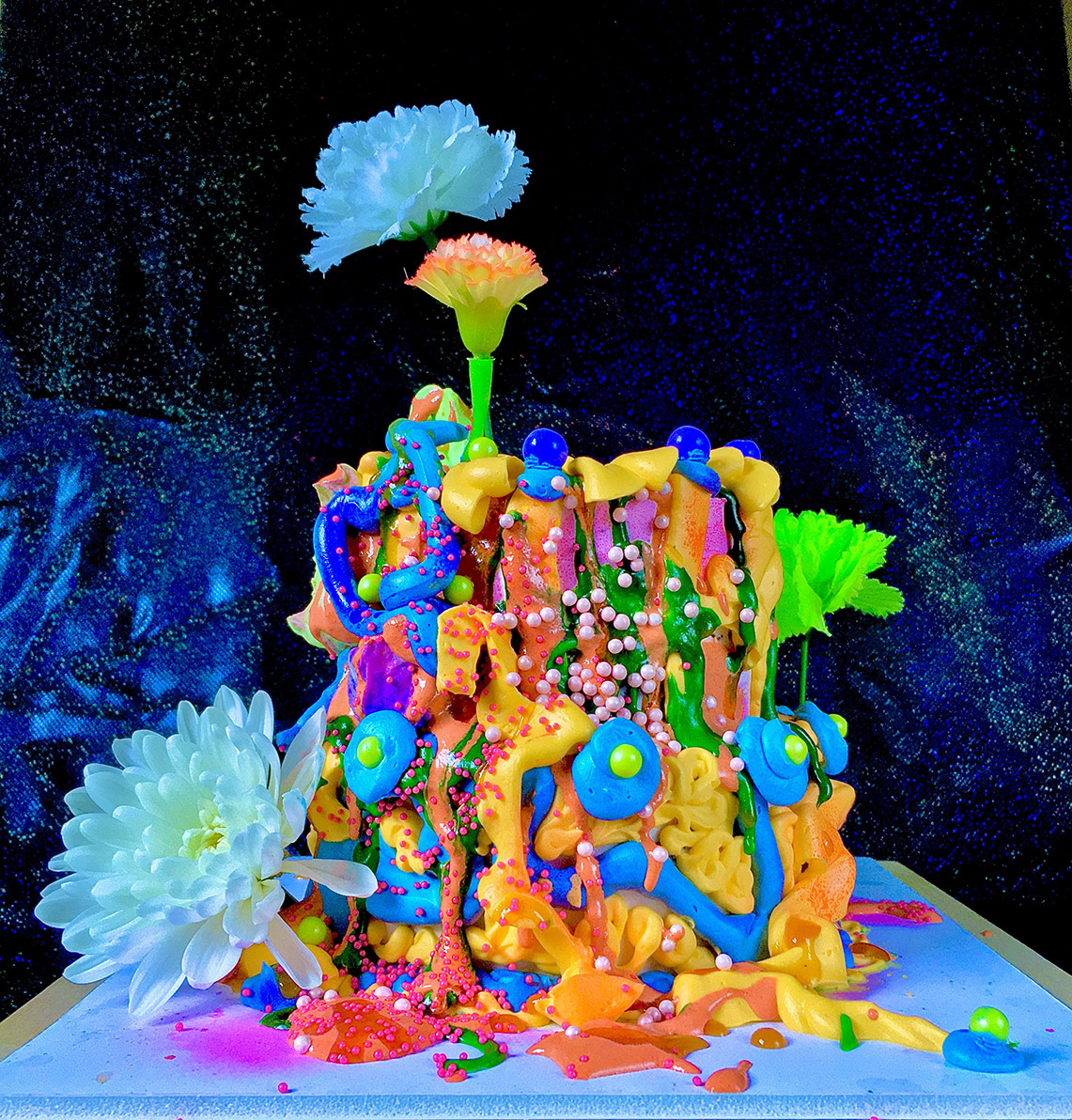 Na fluorescentne, kaotične in abstraktne gmote sem najprej naletela na Instagramu, kjer je bila do potankosti dodelana estetska video predstavitev tort pospremljena z Mozartovo ario iz Čarobne piščali. Celotno vzdušje je vzbujalo občutek, da torte niso (samo) hrana, pač pa predvsem enkratni, skoraj čudežni objekti. Pritegnile so me zaradi izrazito konceptualnega pristopa k peki; ne gre samo za torte, gre za preizpraševanje paradigme, kaj vse je torta, za raziskovanje meja med hrano, objektom in skulpturo, ter tudi za kritično naslavljanje problematike brezglavega metanja še užitnih sestavin v smeti. Torte kot sredstvo razmisleka in kritike?
