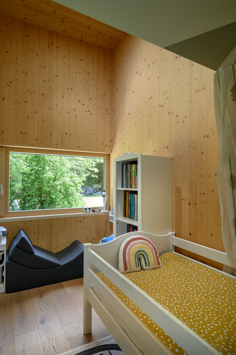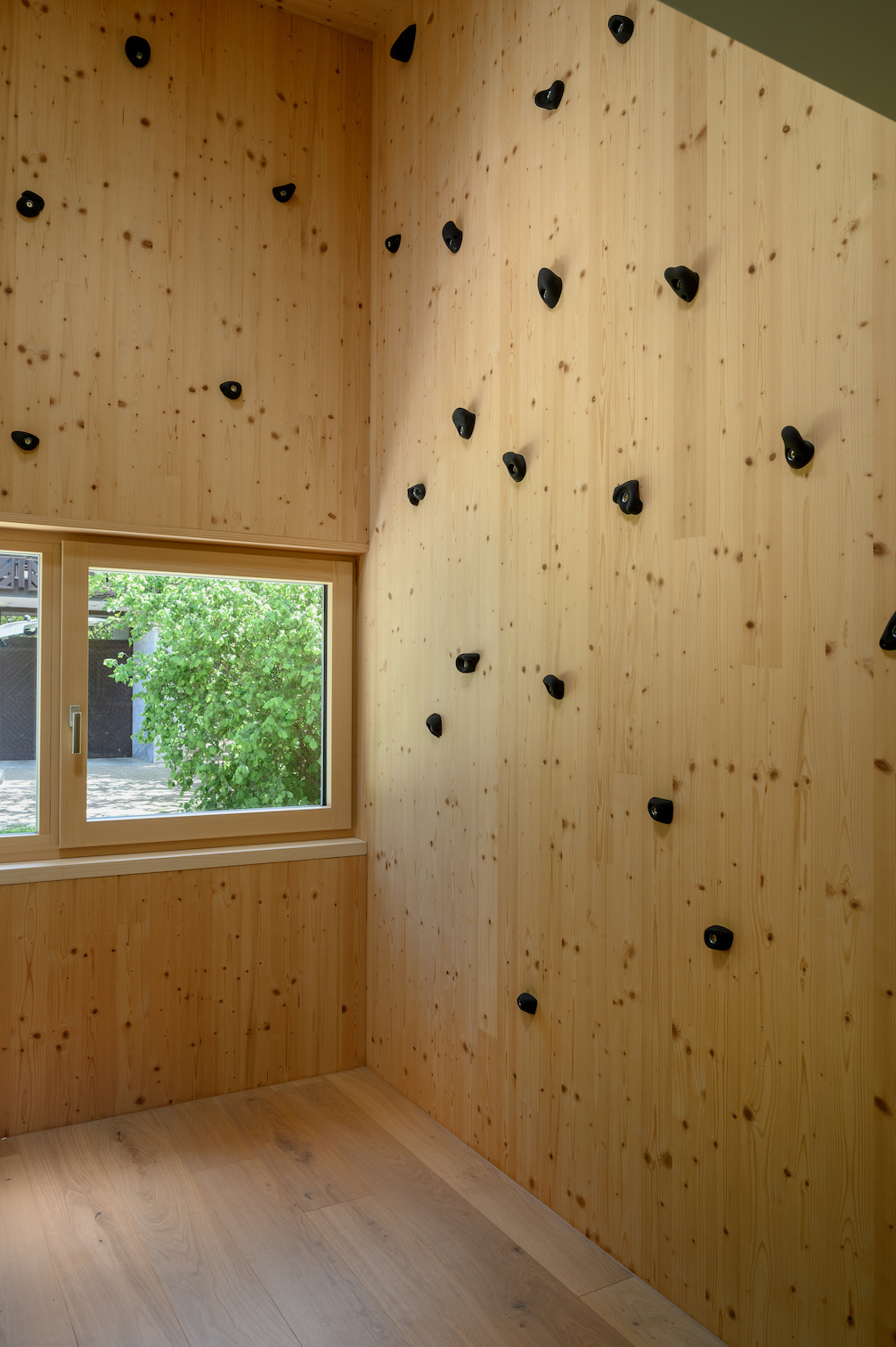 Vsi prostori so v neposredni bližini trate. Fantovske sobe v sredini so povišane in od zgoraj tudi dodatno osvetljene s svetlobnimi jaški. Na ta način mladostnike nagovarjajo k raznolikim kreativnim načinom uporabe v višino.