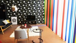 V eni izmed instalacij je Koolhaas izvedel povratek svoje črtnokodne zastave, pa tudi svoje tematizacije projekta Evrope. »Panevropska dnevna soba« je preprosta instalacija, v kateri so zbrani bolj ali manj ikonični oblikovalski projekti iz vseh osemindvajsetih držav članic Evropske Unije. V dnevni sobi se lahko usedemo na avstrijski Thonet stol ali na dansko Wengerjevo zofo (no, bi se lahko usedli, če ne bi bilo razstavne bariere – morda nezavedna alegorija »navideznega demokratičnega elitizma«, ki pesti tudi evropske inštitucije?), noge položimo na grško tradicionalno preprogo in telefoniramo z legendarnim slovenskim Iskrinim telefonom ETA 85 Davorina Savnika. Seveda ne manjka niti švedski Ikea Billy regal. Harmonija v različnosti skratka, priljubljena bruseljska alegorija, stara tema s starimi, večinoma že velikokrat videnimi remek kosi evropskega oblikovanja.