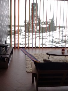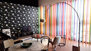 Vendar pa dnevna soba ni osrednji motiv instalacije. Eno izmed sten v celoti prekriva vertikalno senčilo, ki je izum iz petdesetih let dvajsetega stoletja, torej iz obdobja formiranje ideje Evropske unije. Kot opozarja Koolhaasov spremni tekst, je vertikalno senčilo element, v katerem morajo vsi sestavni deli delovati usklajeno. Temu primerno je vsaka izmed vertikal ena izmed barvnih kombinacij zastav članic Evropske unije. V barvasti steni kmalu opazimo razporek: seveda, iz »dobro usklajene celote« vertikalnega senčila je odpadel eden izmed elementov, britanska vertikala – referenca na proces izstopa Združenega kraljestva, ki se še niti ni dobro začel, pa imamo kljub temu občutek, da traja že od nekdaj.