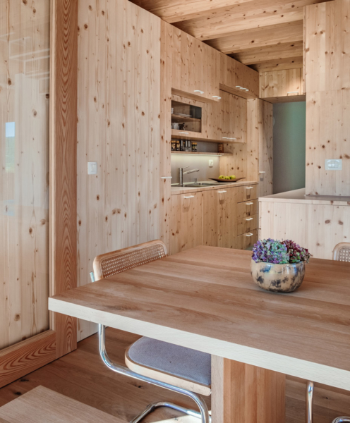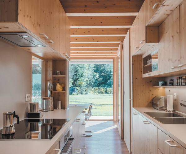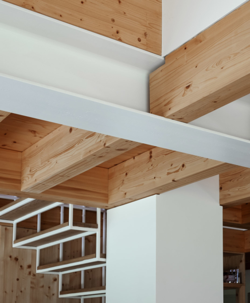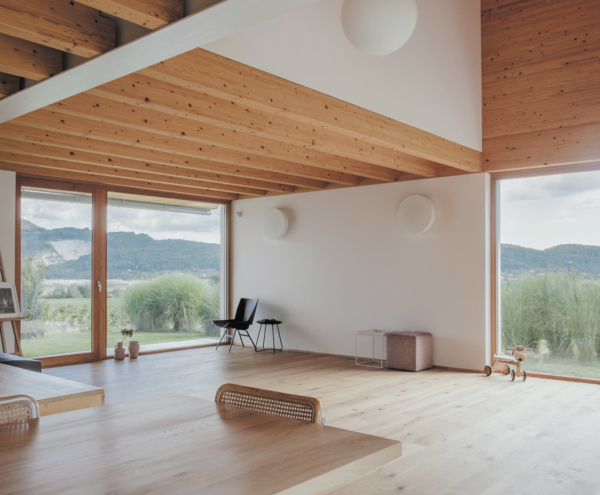 Preprostost hiše se odraža tudi v izboru materialov. Tako zunanjost kot notranjost sta arhitekta premišljeno izoblikovala s tremi osnovnimi elementi: masivnim lesom, belimi stenami in velikimi zasteklitvami.