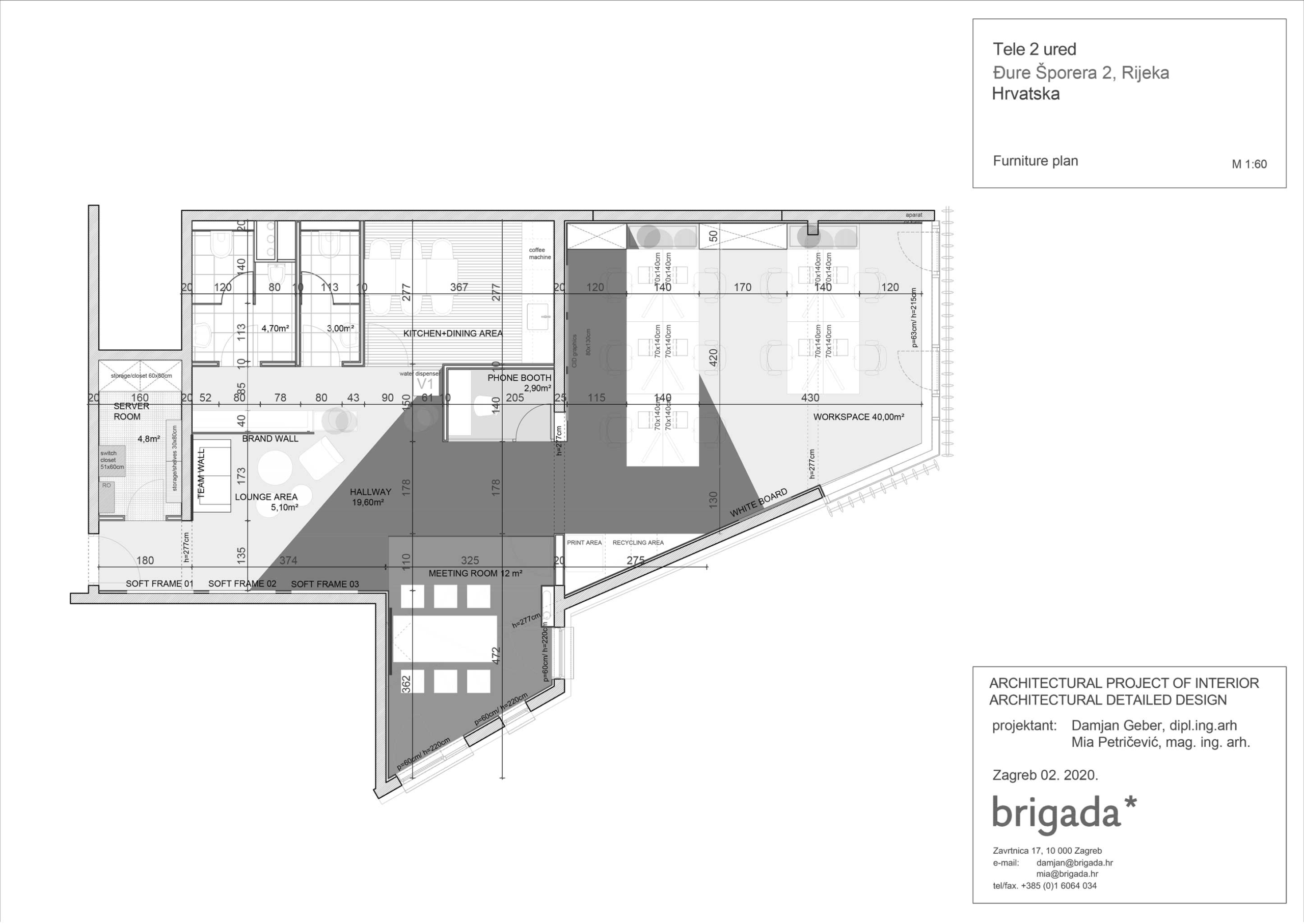 Brigada poleg arhitektov združuje še oblikovalce, strokovnjake s področja prodaje ter svetovalce. Projekt zasnujejo od začetka do konca: najprej identificirajo naročnikove potrebe, oblikujejo rešitev zanje in nato svoj koncept tudi uresničijo. S hrvaškim mobilnim operaterjem Tele2 so že sodelovali pri oblikovanju sedeža podjetja v Zagrebu, ob pripravi projekta za novo podružnico na Reki pa so nadaljevali in razširili svojo vizijo. V novi pisarni so posamezni prostori posvečeni različnim aktivnostim, ki jih zaposleni opravljajo čez dan. Ustrezno okolje, prilagojeno ekipnemu delu, manjši krogom na sestankih ter individualnim nalogam, omogoča optimalno učinkovitost in dobro počutje.