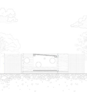 Located in Dobrava pri Škocjanu, within the clearing of the clustered farmstead, the project responds directly to its environmental and architectural context. The site opens toward the southeast, receiving consistent daylight, while colder winter winds predominantly arrive from the north and northeast. Two parallel rammed earth walls are positioned along these exposed edges, forming a protective thermal spine and anchoring the structure within the rural layout. The elongated form aligns with the logic of surrounding farm buildings, reinforcing the existing spatial order rather than competing with it.