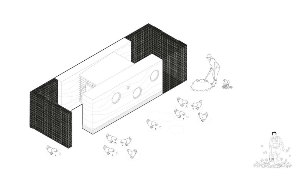 Architecture often speaks loudly when it addresses humans and quietly when it shelters animals. Earthed Coop reverses this hierarchy. It proposes a space where the hen is not an instrument of production but the protagonist of a carefully constructed micro-architecture. The project begins from a clear intention: to provide comfort, protection, and dignity for the hens while reducing human intervention to what is strictly necessary. The coop is conceived not as a utilitarian object but as a small, precise building that expresses a relationship to soil, climate, and everyday ritual.