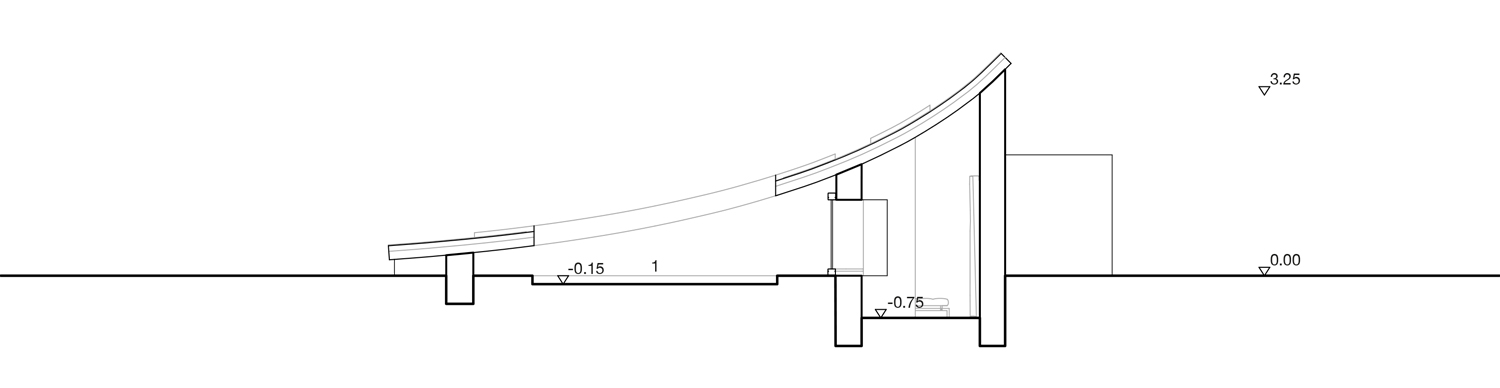 There is a strong idea that in such a space, with such approach to building, one lives differently than in an ordinary house, and this emphasis is decisively followed in the whole concept. The user experiences the compacted earth explicitly in a series of curved walls, carefully thought-out light and views. Here the user encounters elementary questions – what are a curve, plane, light and view? On the other hand, the contemplative character of the building is in potential conflict with the collective and residential message of the competition.
