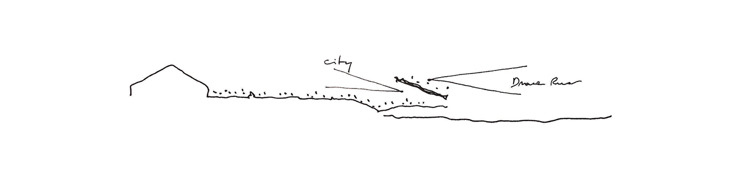 - Pojem kraja: Zasnova poskuša ustvariti dialog med dvema zelo različnima urbanima kontekstoma, kot sta reka in mesto.