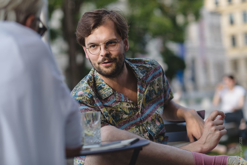 Vid: Zdi se mi super, kaj se je v zadnjih letih zgodilo z nekaterimi javnimi stavbami v Ljubljani. Moderna galerija je postala odprt prostor. Zanimivo je, kako mestna je postala, tudi vzdušje tukaj, kjer sedimo, je zelo drugačno, ležerno. Podobno velja za tradicionalno božično zabavo v Moderni. Ne glede na svojo institucionalnost je to stavba, ki ljudem približuje umetnost.