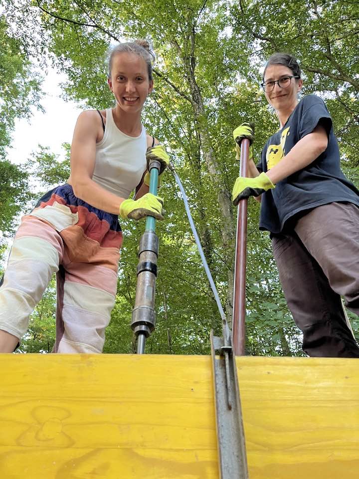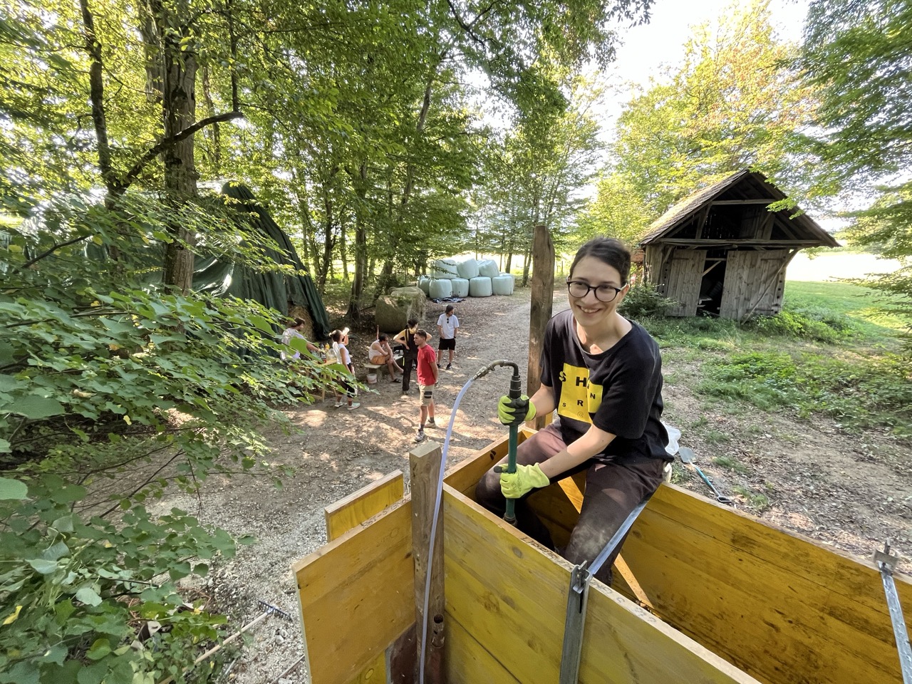 Ob vsem tem pa smo skozi teden neprestano živeli tudi z osnovnimi elementi narave. Zemlja nam je dala gradivo, iz katerega smo ustvarili zid. Voda nas je spremljala pri mešanju, osvežitvi in kopanju v Krki. Zrak je bil dih našega dela in druženja – od pogovorov do pnevmatičnega kladiva, brez katerega ne bi mogli napredovati. Ogenj pa je bil večerno središče topline, pripovedi in praznovanj.