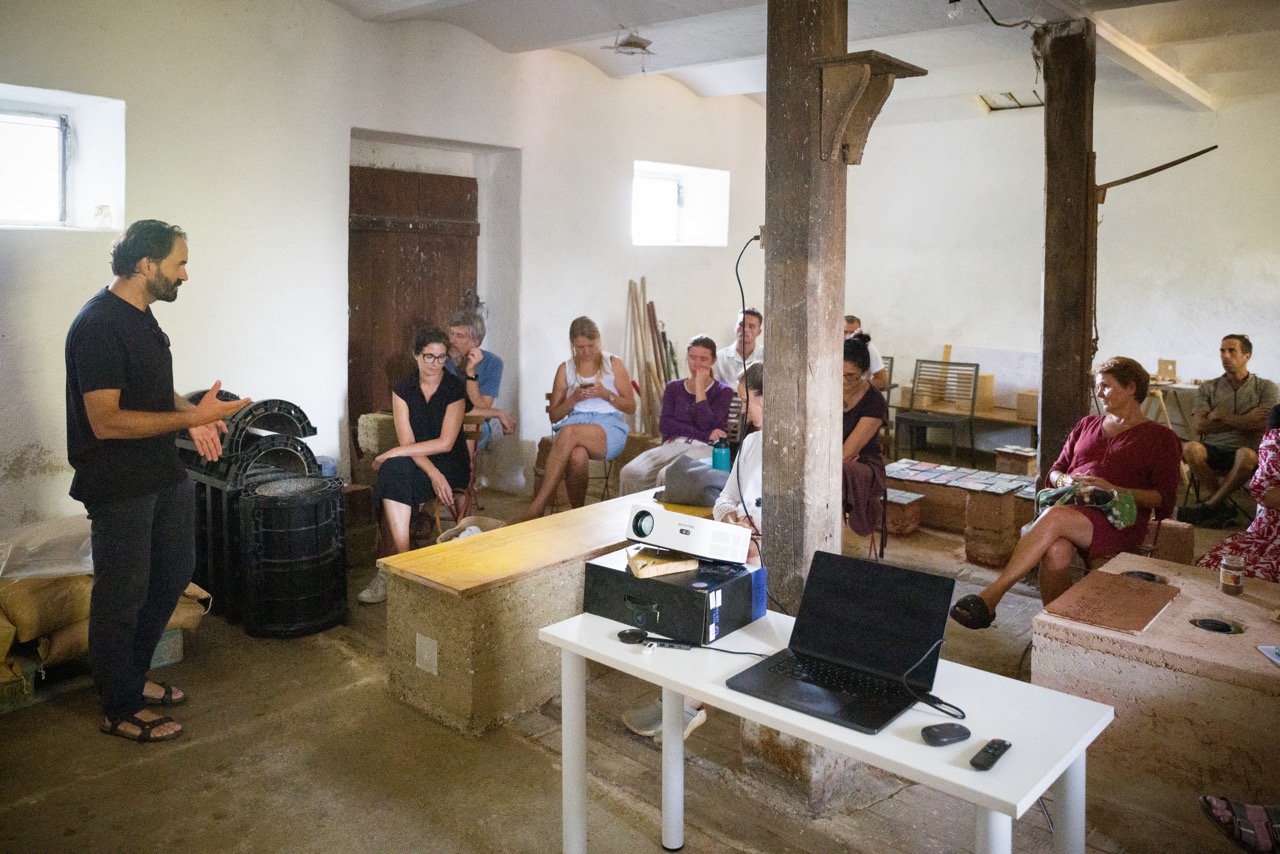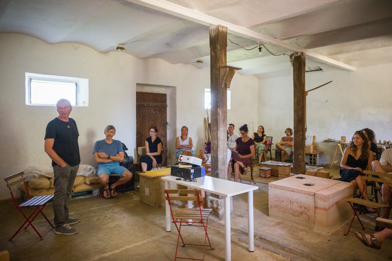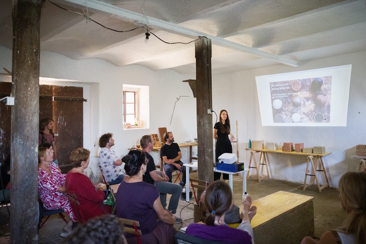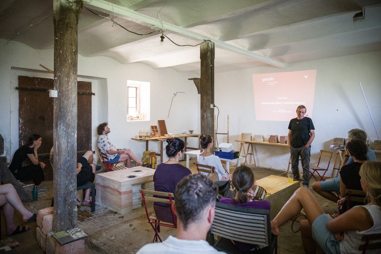 V nadaljevanju programa je Tone Pugelj predstavil sodobno prakso gradnje z naravnimi materiali v Sloveniji – od lesa in slame do zbite zemlje. Poudaril je pomen znanja, ki izhaja iz tradicije, ter pokazal, kako se to lahko prepleta z današnjimi potrebami trajnostne gradnje.