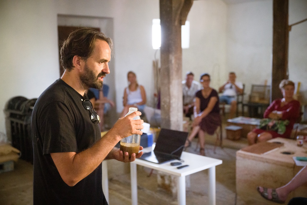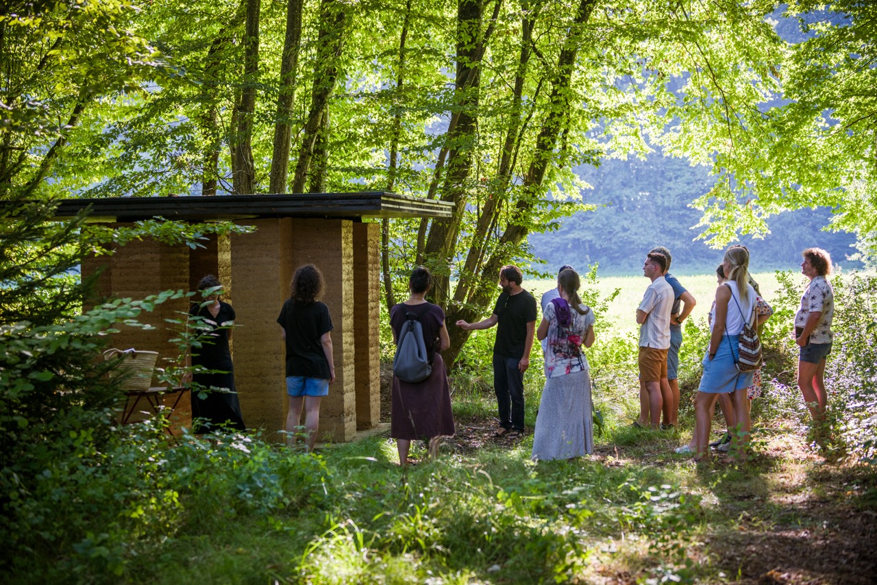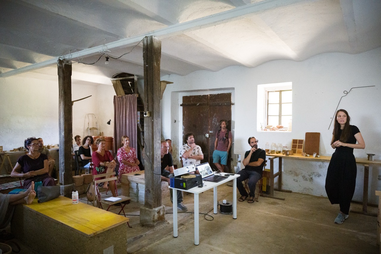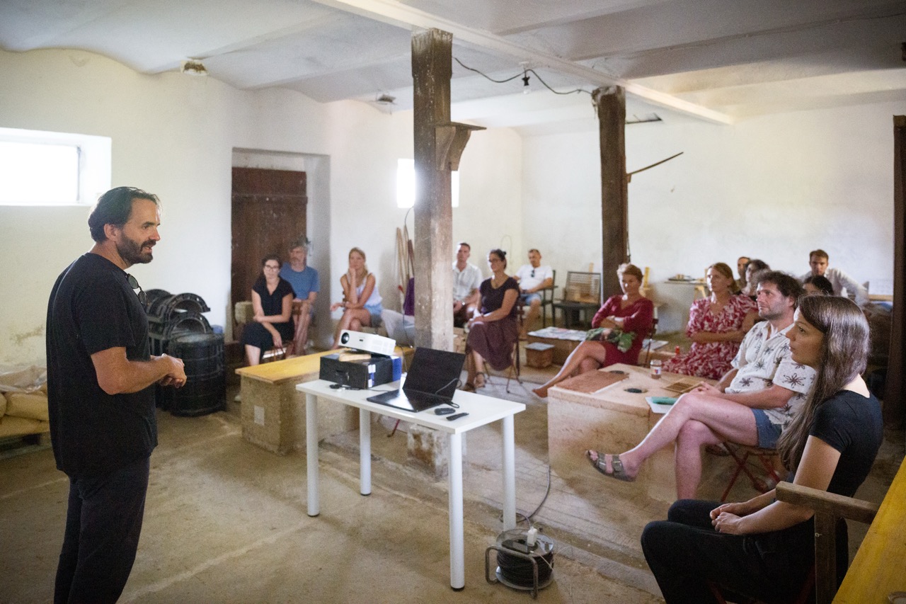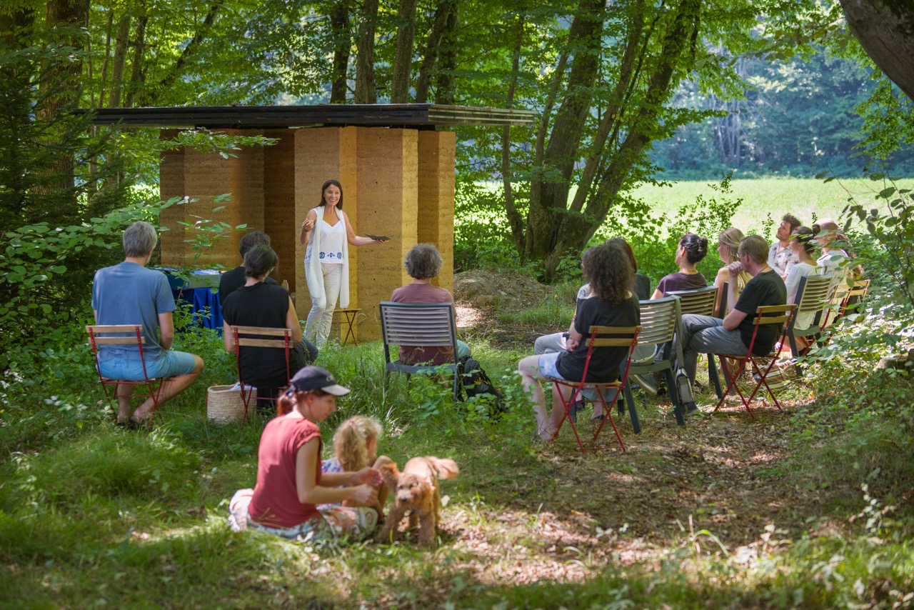 V nadaljevanju programa je Tone Pugelj predstavil sodobno prakso gradnje z naravnimi materiali v Sloveniji – od lesa in slame do zbite zemlje. Poudaril je pomen znanja, ki izhaja iz tradicije, ter pokazal, kako se to lahko prepleta z današnjimi potrebami trajnostne gradnje.