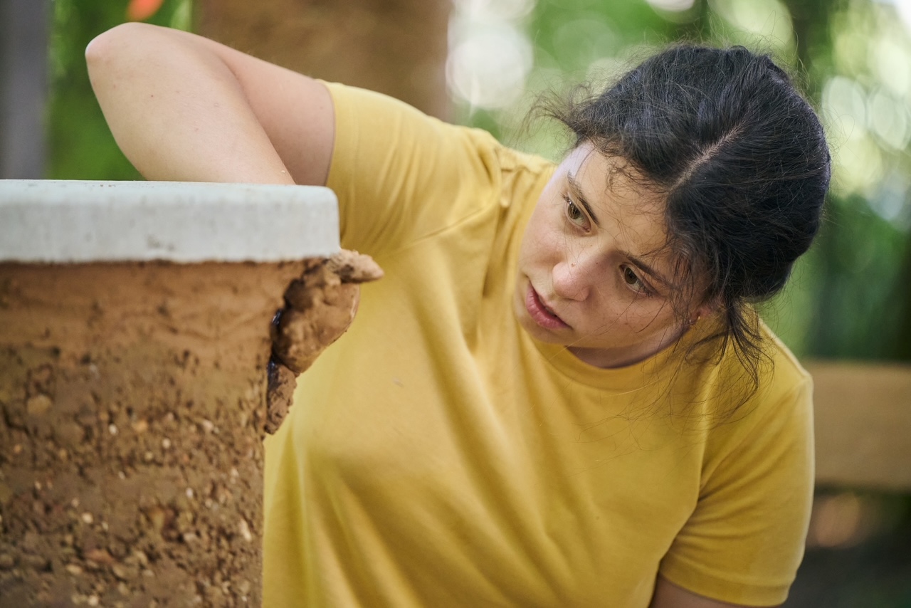 Packanje z zemljo je ponavadi bolj sprejemljivo, če to počnejo otroci, zato se več let z zemljo nisem ukvarjala, razen če štejem tisto v loncu moje sobne rastline. Na delavnico “Gradnja z zemljo” sem se prijavila, ker sem med študijem arhitekture velikokrat naletela na projekte, kjer je bila zemlja uporabljena kot gradbeni material. Ideja o gradnji z materialom, najdenim na lokaciji, ki bi omogočila, da bi hiša dejansko zrasla iz tal, se mi je zdela fantastična. Nisem pa si predstavljala, kako zabaven je lahko proces gradnje z zemljo.