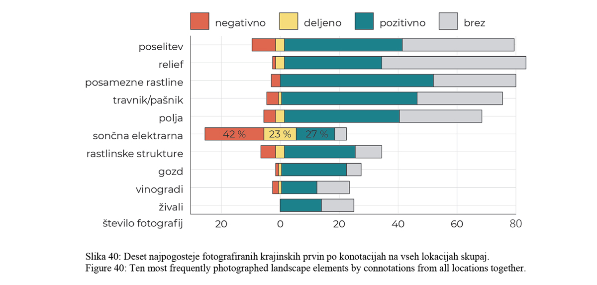 Kot omenja dr. Pintar, je ena od posledic, ki pri konkretnem umeščanju mogoče najbolj neposredno vznemirja tako neposredno prizadeti del splošne javnosti – okoliške prebivalce – kot različne udeležene stroke, sprememba krajinske podobe, ki jo s seboj prinašajo polja sončnih panelov in vetrnih turbin. Prav s tem vprašanjem se je ukvarjal Tadej Bevk v svoji doktorski disertaciji iz leta 2020 z naslovom Zaznava krajin, preoblikovanih s postavitvijo sončnih elektrarn. V okviru disertacije je raziskoval vpliv sončnih elektrarn na vrednostno in estetsko percepcijo ruralnih krajin s pomočjo metode raziskovanja zaznavanja krajine – ta je vključevala skupine prostovoljcev, ki so obiskali krajine s sončnimi elektrarnami in opisovali svoj pogled nanje.