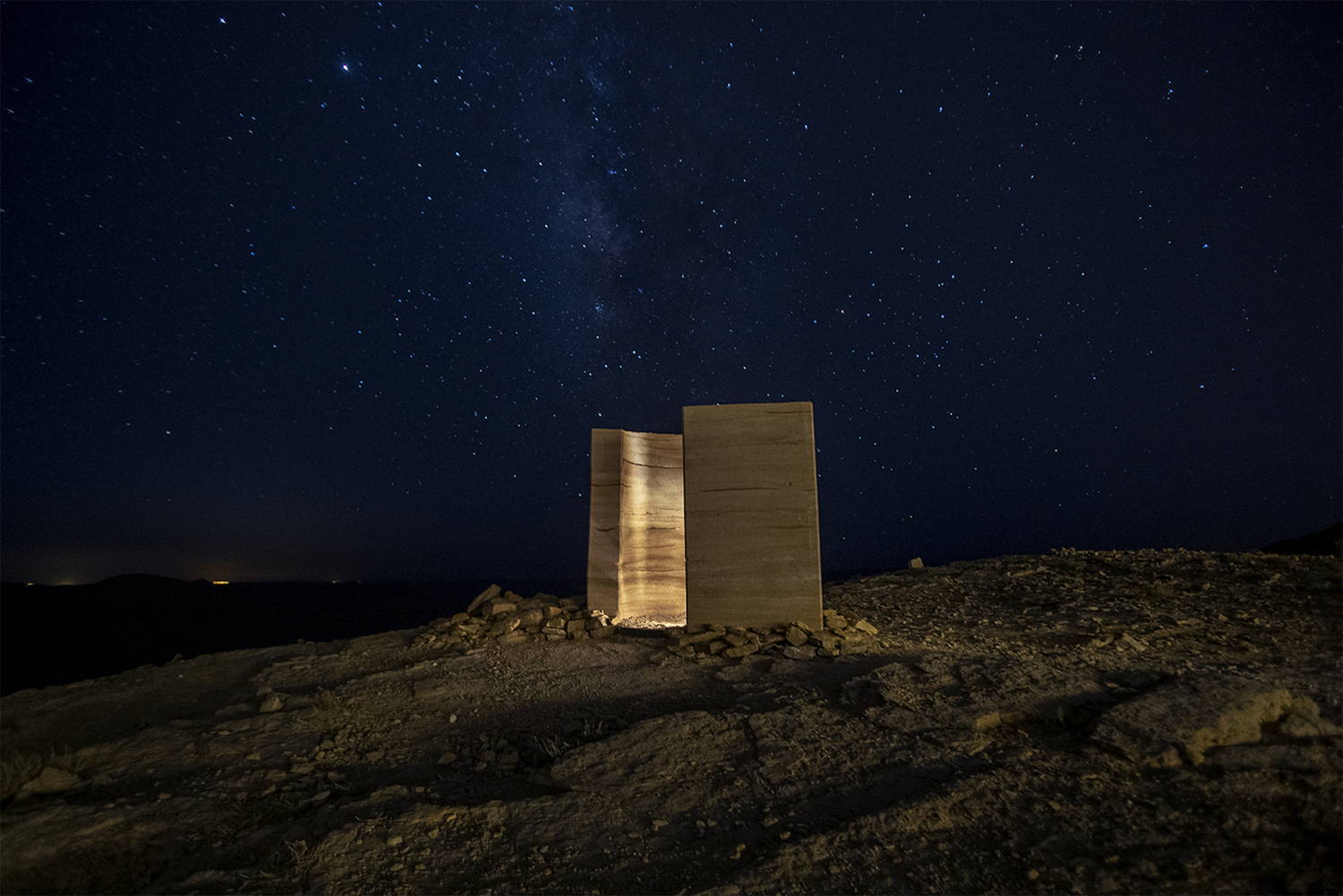 Observatorij v puščavski pokrajini Negev, v celoti zgrajen iz zbite zemlje in kamnin iz bližnjega kraterja, so zasnovali v izraelskem studiu Gitai Architects. Prvotna ideja je bila, kot pojasnijo avtorji, načrtovanje zatočišča kot »vrat do zvezd v času krize«. Namembnost objekta pa se po zgraditvi skozi dan spreminja. Podnevi zagotavlja zaščito pred hudo vročino, zvečer pa deluje kot observatorij za ljubiteljske astronome. Stoji ob zahodni razgledni točki kraterja Mitzpe Ramon.
