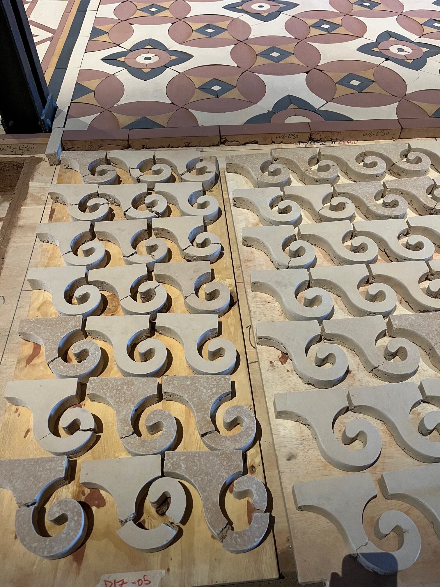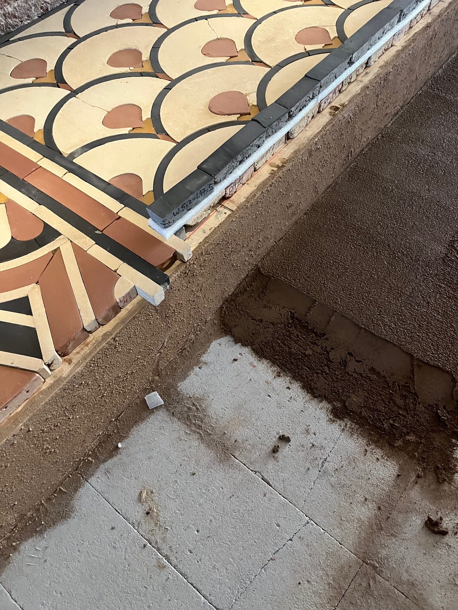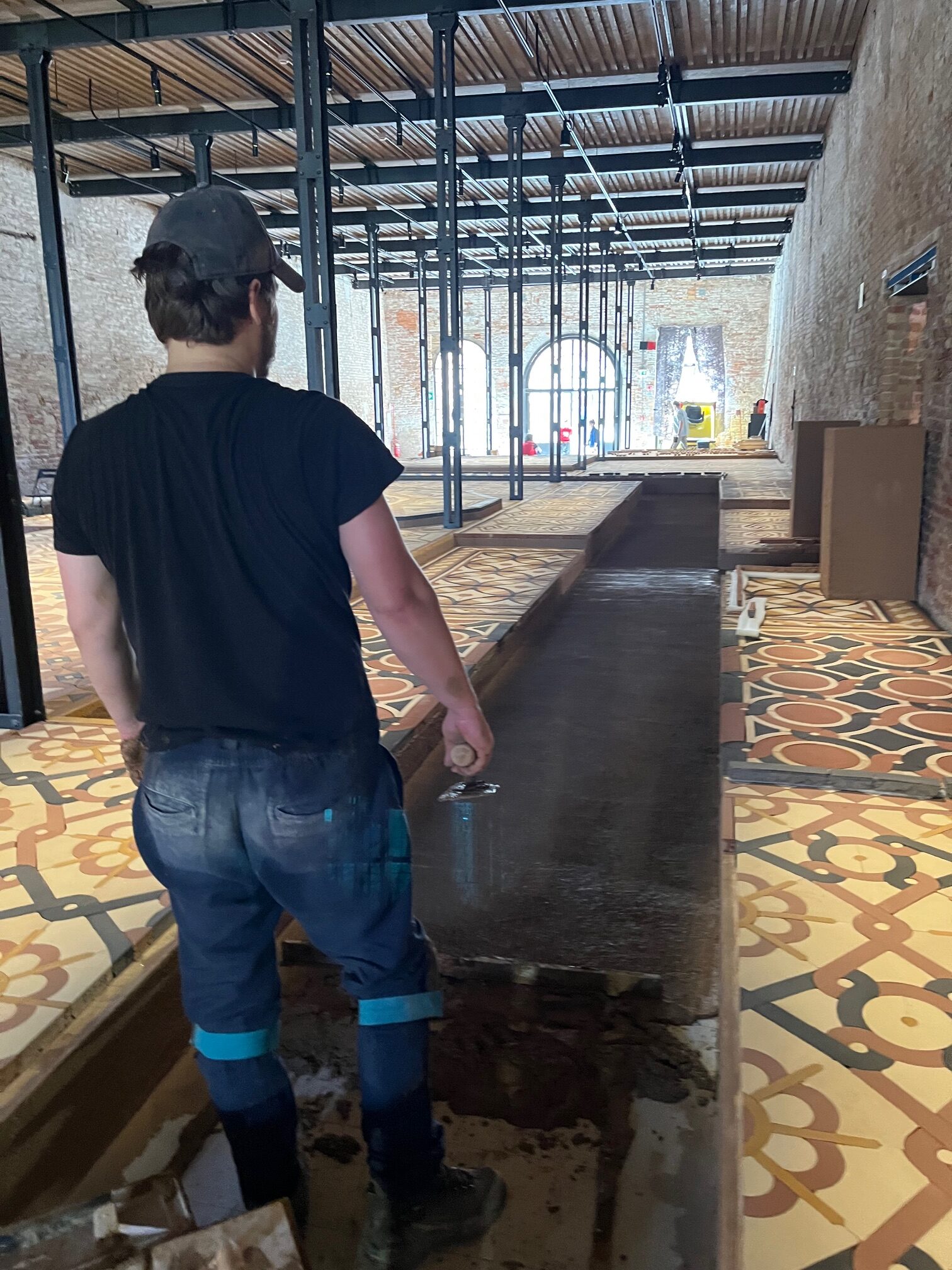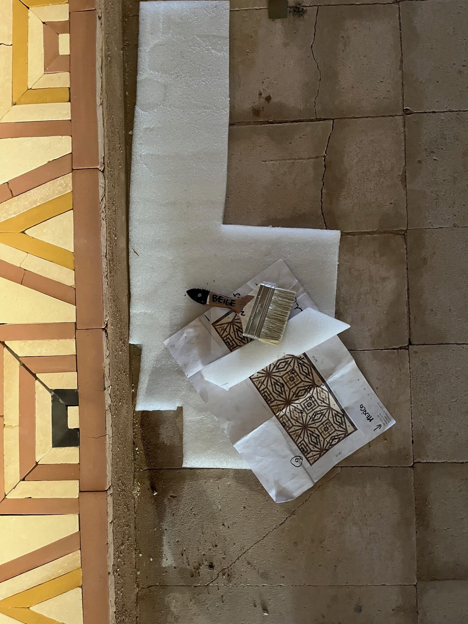 Namesto kontemplativnega dela z zemljo smo se znašli v bitki s časom. Mozaiki, izjemno kompleksni in natančni, so začeli nastajati istočasno z zemeljsko arhitekturo, ki jih obdaja. Delo, ki bi si želelo mir, zaporedje in počasnost, se je spremenilo v sočasno usklajevanje različnih rok, odločitev in ritmov. Vsak korak je vplival na drugega. Zemeljski sloj je potreboval svoj čas, mozaiki svojega, otvoritev pa se bliža.