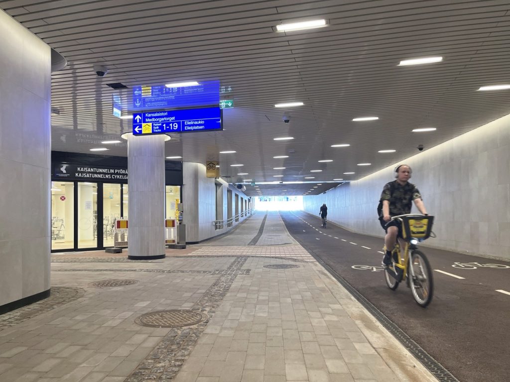 Mreža kolesarskih poti v Helsinkih je od letošnjega maja bogatejša za nov predor pod glavno železniško postajo, ki povezuje park Kaisaniemi vzhodno od postaje in Trg meščanov (Kansalistori) na njeni zahodni strani. Kaisantunneli, kot se uradno imenuje nov 220 metrov dolg predor, so gradili več kot tri leta, končna investicija pa je znašala približno 33 milijonov evrov.