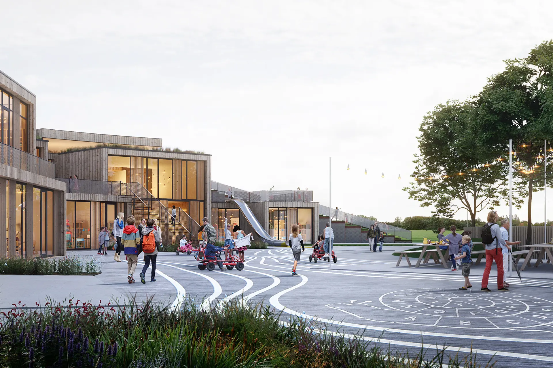 Ta nova osnovna šola bo prva na Danskem, ki bo prejela nordijski okoljski znak (Nordic Ecolabel), kar potrjuje njeno zavezanost trajnosti. Certifikat temelji na različnih merilih: porabi energije, notranjem podnebju in uporabi trajnostnih materialov. Zasluge za to so predvsem posledica slamnate fasade, ki ovija krožno zasnovo stavbe. Šola, ki bo sprejela okoli 580 učencev, obkroža zaščiten prostor za igro; nekateri prostori so obrnjeni navznoter, medtem ko drugi gledajo na obkrožujočo pokrajino.