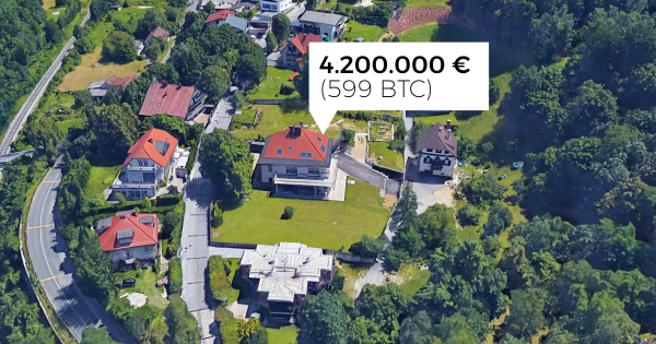 Med nepremičninskimi oglasi za hiše je trenutno najvišji znesek – ta med različnimi oglasi variira – 6.500.000 € (926 BTC) oziroma 4.200.000 € (599 BTC), in sicer za hišo na obronkih Golovca pod astronomskim observatorijem, ki jo v oglasih opisujejo kot »zelo impresivno hišo na idilični lokaciji in kljub temu v neposredni bližini centra mesta«. Hiša je v IV. gradbeni fazi in za njeno dokončanje je treba vložiti še kakšen milijon. Žal pa, sodeč po fotografijah, nepremičnina kot taka ne daje občutka, da bi bila vredna večmilijonskega zneska. Njena prodaja je težavna, med drugim tudi zato, ker je nedokončane sanje težko prodati. (povezava)
