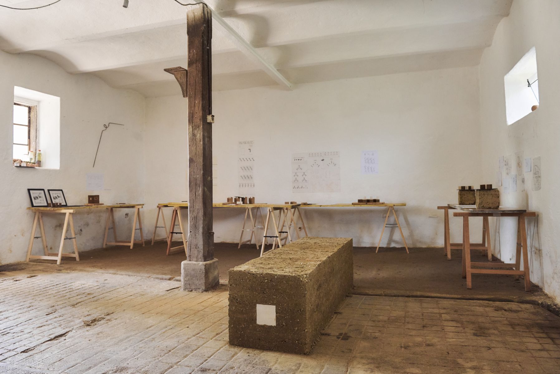 The purpose of this year’s pavilion is to test additives in the earth mixture and examine their impact on the structure’s resistance to various weather conditions. Therefore, we have chosen round columns, which are evenly exposed to all directions.