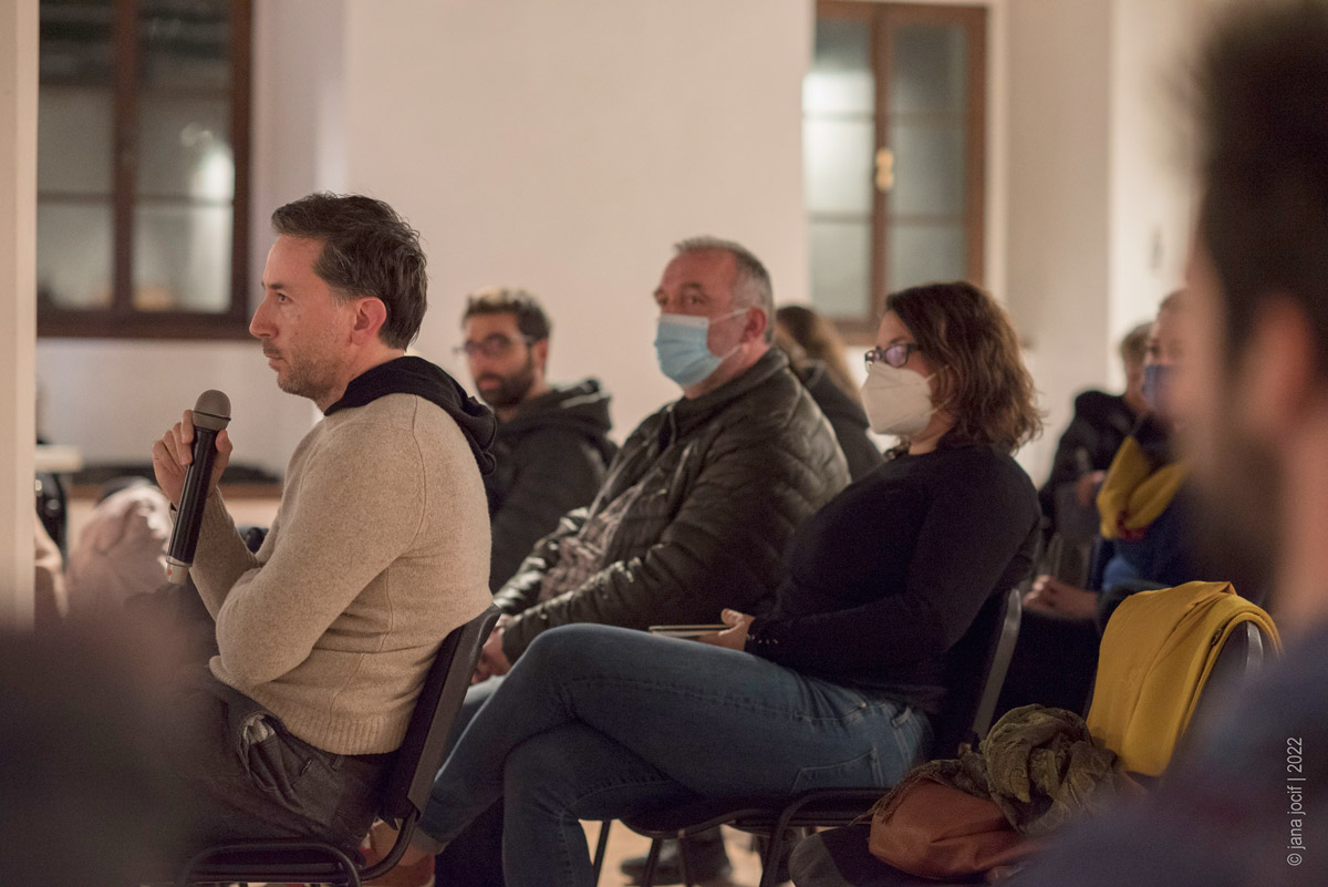 Predstavitvam je sledila skupna razprava katere glavni poudarki so bili zakonodaja, povezovanje in praksa. V razpravi je bilo poudarjeno, da bi bilo smiselno prenesti izkušnje iz okolji, kjer je področje gradnje z zemljo že urejeno, kot sta Avstrija in Nemčija. Tam so pravila veliko manj zbirokratizirana. Nekaj izboljšav na tem področju bo prinesel tudi sporni novi Gradbeni zakon, ki ukinja dokazila o zanesljivosti objektov za nezahtevne objekte, kar odpira vrata naravnim materialom pridobljenim lokalno. Pomembno pa je tudi, da se uvede nova in enotna terminologija, saj se pojmi uporabljajo nejasno in napačno. Razpravo smo zaključili s pozivom k povezovanju.