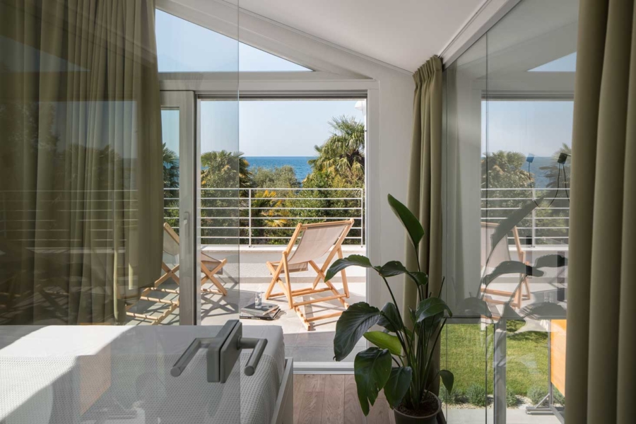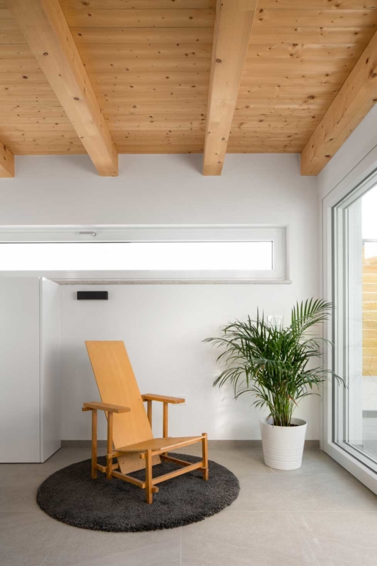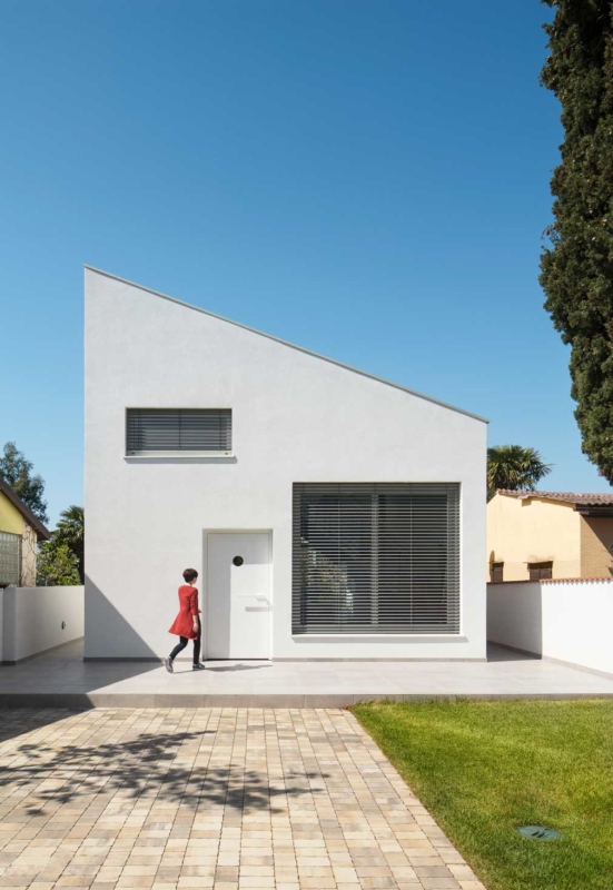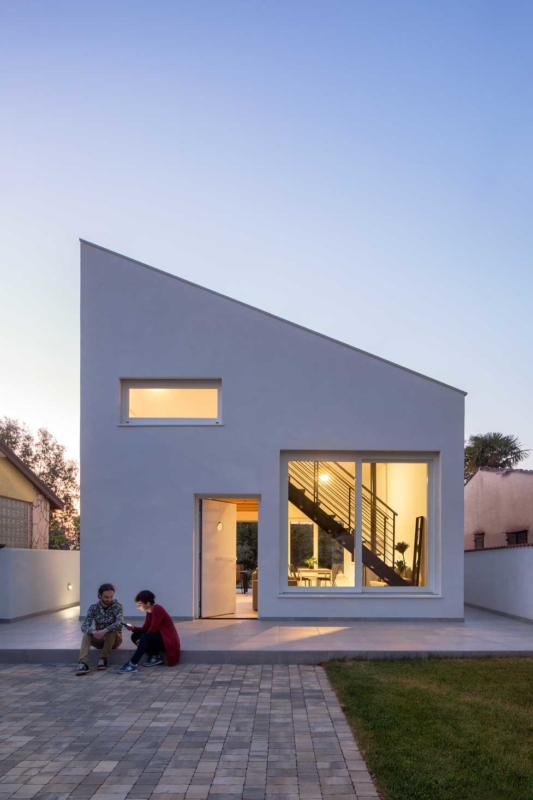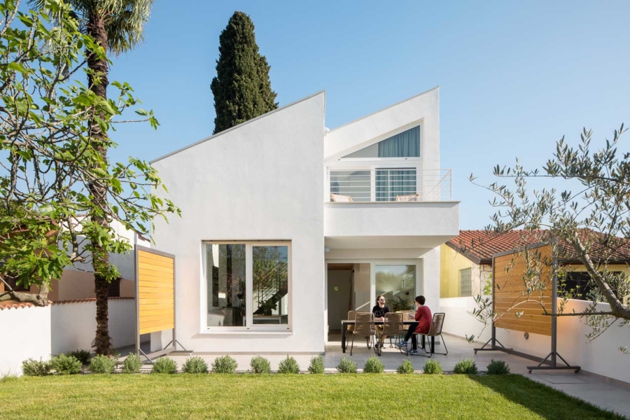 Novogradnja je nadomestila starejšo hišo, ki je s svojim gabaritom narekovala tudi velikost in obliko nove arhitekture. Okoliški urbanizem predvideva pritlične hiše, vendar je bila investitorjeva največja želja, da bi s terase svoje hiške lahko opazoval morske valove, a to zaradi oddaljenosti in vmesnih objektov s tal ni mogoče. Arhitekti so se zato odločili izkoristiti maksimalno dovoljeno višino slemena in napušča ter v pridobljenem podstrešnem volumnu pridodati galerijo, s katere je zagotovljen zaželeni razgled, ki sega do obzorja.
