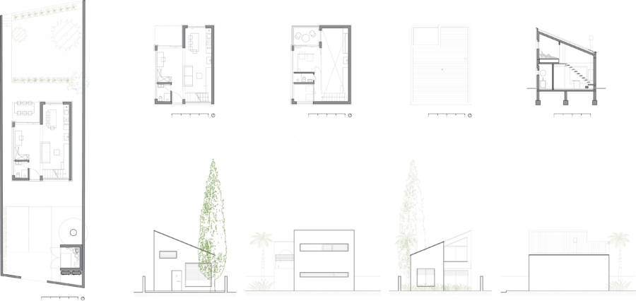 Druga zagata, s katero so se arhitekti soočili na lokaciji, je osončenost. Večina okoliških hiš ima severno orientacijo in velika zunanja senčila, da bi se izognila vročemu poletnemu soncu. Ker pa bo investitor hišo uporabljal vse leto, so se arhitekti odločili za drugačen odnos do sončne svetlobe, ter izdelali temeljito študijo osončenosti, s pomočjo katere so zagotovili prijetno osvetljenost in temperaturo vse leto.