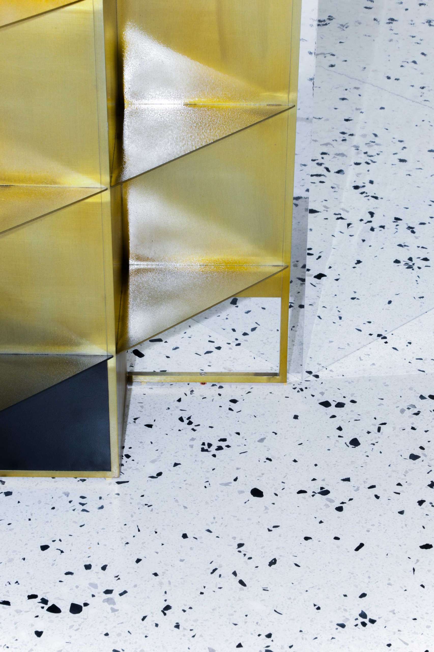 Notranjost novega salona spominja na prepovečan lightbox: z vseh strani osvetljeno škatlo, ki zagotavlja enakomerno svetlobo pri fotografiranju. Ob vstopu obiskovalec stopi na oder, na katerem je pod žarometi on sam, fantastičnost izkušnje pa še poudarjajo številna ogledala, ki odpirajo imaginarne prostore. Bleščeče bele stene so podlaga, na kateri se vrstijo dramatični črni, zlati in zeleni poudarki. Interier je nastajal v letu 2020, ki je ob svojem začetku obljubljalo nostalgijo po divjih dvajsetih letih prejšnjega stoletja, postreglo pa z vse čim drugim. Salon Simon kljub temu namiguje na razkošje art decoja in obuja ekstravagantno igrivost.
