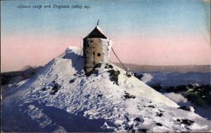 Kralj Jugoslavije Peter II ob Aljaževem stolpu tik pred drugo svetovno vojno