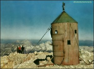 Lani smo na spletni strani Outsider Knafelčevo markacijo označili za morda kar najbolj ikoničen in vztrajen produkt slovenskega oblikovanja. Vendar pa je Aljažev stolp očitno tako samoumeven objekt, da nam je vse prelahko spregledati očitno vzporednico: da imamo na vrhu Triglava morda najbolj ikoničen slovenski arhitekturni objekt, ki je nenavadna prepletenost pragmatizma in simbolike. V preteklih dneh je Zavod za varstvo kulturne dediščine oznanil prihajajočo temeljito prenovo Aljaževega stolpa, ki je načrtovana za konec sezone prihodnje leto. Kako bistvena je še vedno skoraj mistična fizična prisotnost avtentične snovi stolpa, so razkrile že razgrete debate ob idejah, da bi morali izvirnik omakniti v muzej in ga nadomestiti s kopijo. Nato je bil nepotrebni korak opuščen in je bilo sklenjeno, da se bo stolp v dolino preselil samo za tri tedne, da ga ustrezno obnovijo. Kljub temu pa je v načrtu, da Triglav tudi teh treh tednov ne bo preživel brez svojega pločevinastega pokrivala – takrat naj bi ikono nadomeščala replika.