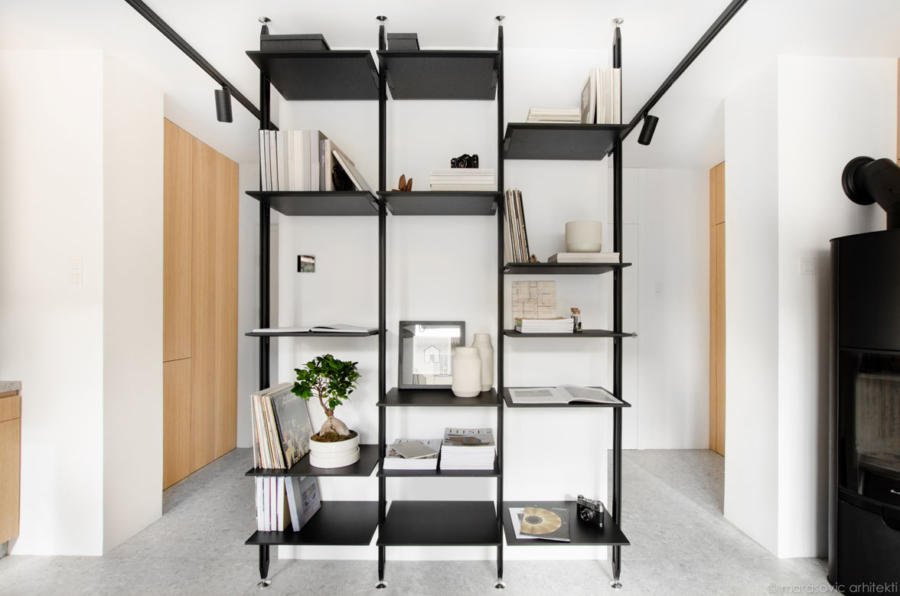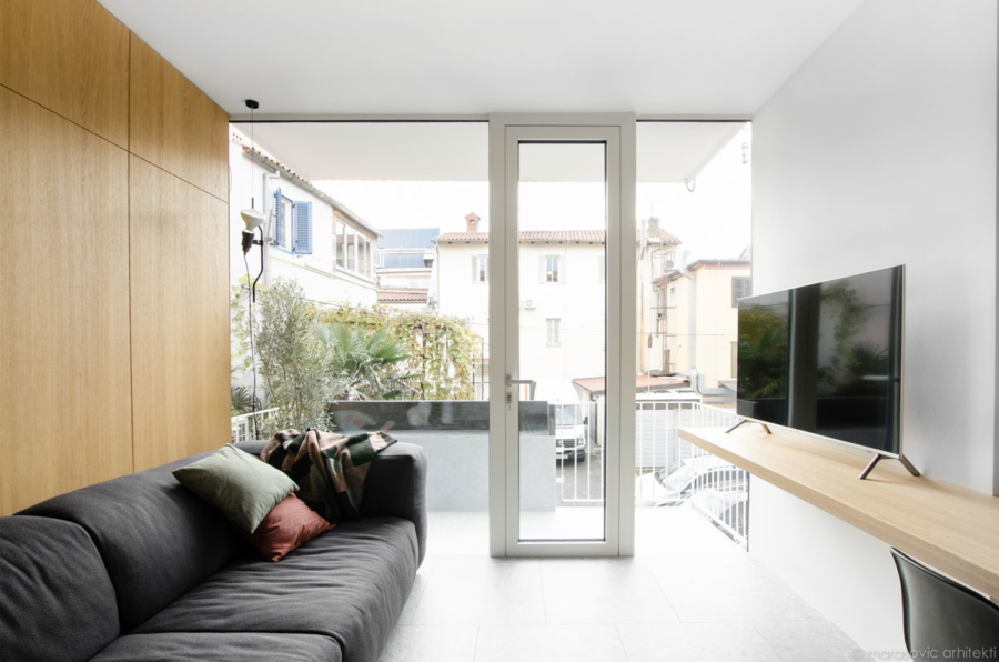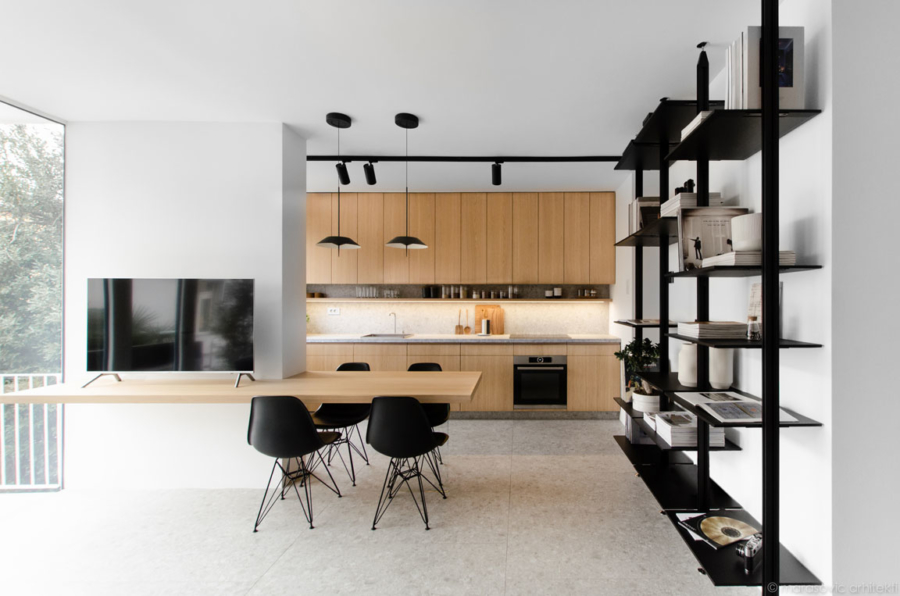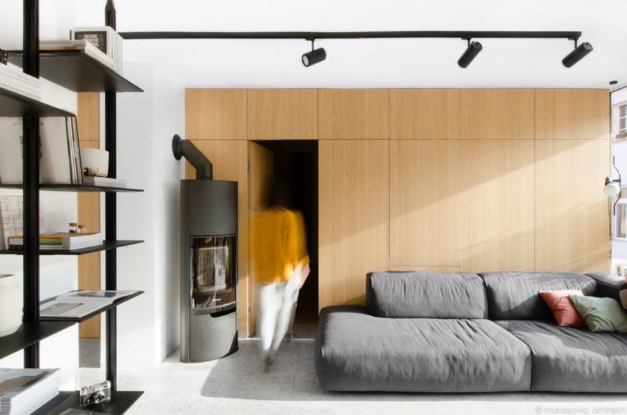 Delati od doma ali živeti v studiu? Stanovanje M8, ki so ga Marasovic arhitekti zasnovali v Kopru, je vzorčni primer njihovega načina razmišljanja, ki ga radi pokažejo strankam. Popolnoma funkcionalno stanovanje za par je namreč kar sestavni del njihovega studia.