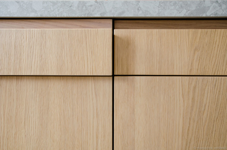 Marasovic arhitekti sta Gaja Brulc in Igor Marasovic, njuno stanovanje/showroom/studio pa se nahaja v stavbi Eda Mihevca v središču Kopra, kar je bistveno vplivalo tudi na zasnovo notranje opreme. V tej je mogoče začutiti odmeve modernističnega oblikovanja, ki pa je povsem prilagojeno sodobnim potrebam in načinu življenja. K prenovi sta arhitekta tudi sicer pristopila z mislijo na pretočen in povezovalen značaj današnjih stanovanj. Odstranitev dela predelne stene med kuhinjo in dnevnim prostorom je bila tako samoumevna, prav tako pa zahteva po svetlobi in zračnosti.