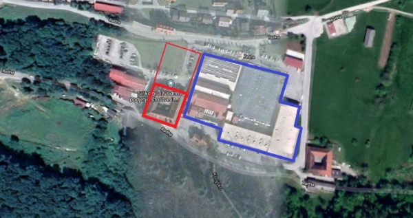 Situacija dvorca, zelenice pred njim in proizvodnih dvoran vzhodno od njega (vir: Googlemaps)