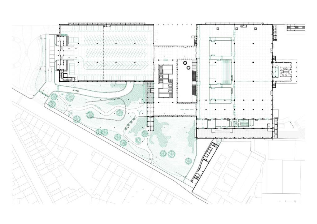 Gre za prenovo kongresnega centra iz 50. let prejšnjega stoletja. Projekt odpre nekdanjo osrednjo dvorano in jo spremeni v pokrit mestni prostor. Zagotavlja fleksibilno rabo in funkcionira kot del zunanjosti: vanj se vključujejo javne površine, parkirišče in krajina. Prenova ni končna točka, temveč omogoča, da se stavba razvija in zaživi na novo.
