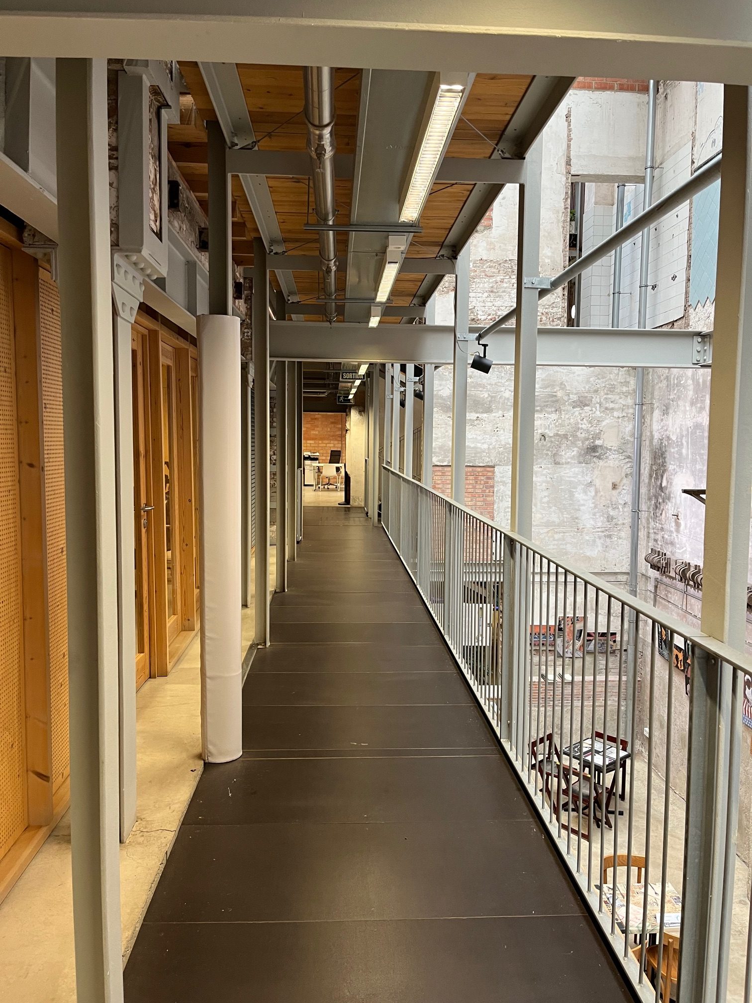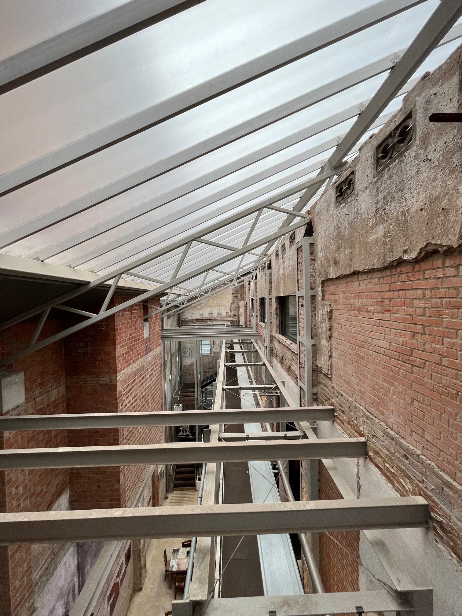 Sedim na topli klopi v Lleialtat Santsenci, v prostoru, kjer se združujejo različne plasti stavbe, opazujem kolaž stare opečne stene za mano, skozi stekleno poševno streho rahlo pronica toplota sonca, snop žarkov preko nagubanega senčila, miselno nameščenega med novo kovinsko konstrukcijo, ki objema prostor v notranjosti. Če bi me vprašali pet let nazaj, zakaj me prostor navdušuje, bi odgovorila, da zato, ker lepo izgleda, vendar me danes pridobljeno razumevanje arhitekture opomni, da sem pozorna na vse detajle, majhne stvari, gibanje svetlobe skozi prostor, stik materialov, ki čutijo različne neskončnosti izpostavljenosti času. Vse podrobnosti, ki v resnici naredijo prostor, kot pika v stavku, ki je neopazno tam, ampak jasno narekuje vsebino.
