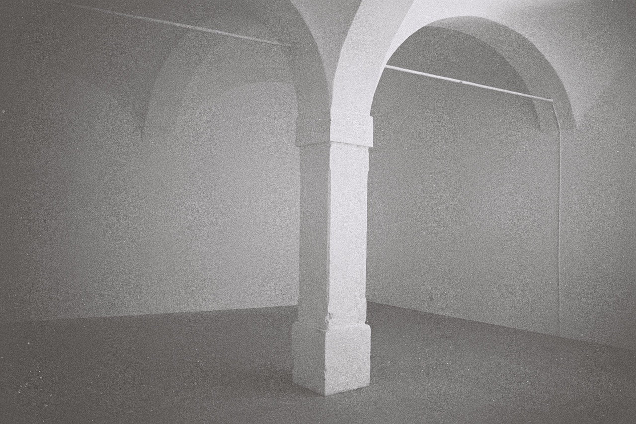 Poslopje se nahaja pod grajskim hribom in dvorana, ki leži ob Študentovski ulici je delno pod zemljo, zato je v uporabi le od aprila do oktobra, stene se namreč v zimskem času močno navlažijo zato jih po potrebi pred posameznim dogodkom vedno znova sanirajo. Včasih pa ustvarjalcev to niti ne zmoti, temveč vzamejo kot še eno danost prostora – tako, kot so to oboki ali sredinski steber. Bolj kot sterilni videz se članicam zdi pomembno, da je prostor izpraznjen, brez nepotrebne navlake, kar umetniku omogoči, da ga vzame kot čisto možnost, iz katere vznikne delo.