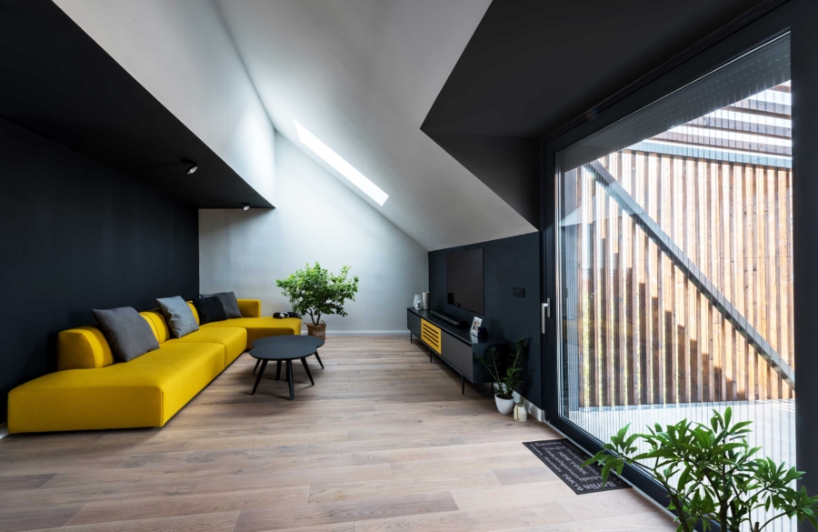 Lokacija hiše v bližini tržnice Jarun v Zagrebu je obkrožena s kaotično mešanico nižjih enostanovanjskih hiš in večstanovanjskih objektov. Robni pogoji so narekovali arhitekturno rešitev, ki se s svojo enostavno obliko vklaplja med okoliške stavbe. Črna arhetipska podoba hiše z dvokapno streho pa je obogatena z volumni teras; ti so v nasprotju z monolitnim glavnim volumnom zasnovani zelo lahkotno, v odnosu do kompaktne glavne hiše so skorajda dematerializirani.